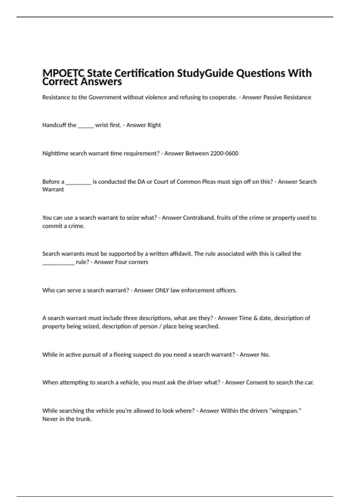 MPOETC State Certification StudyGuide Questions With Correct Answers