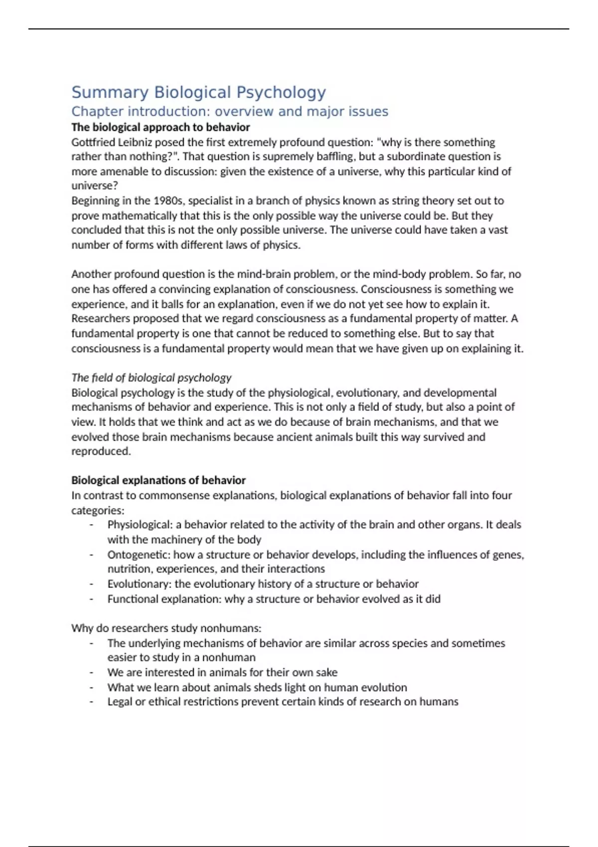 Summary Biological Psychology