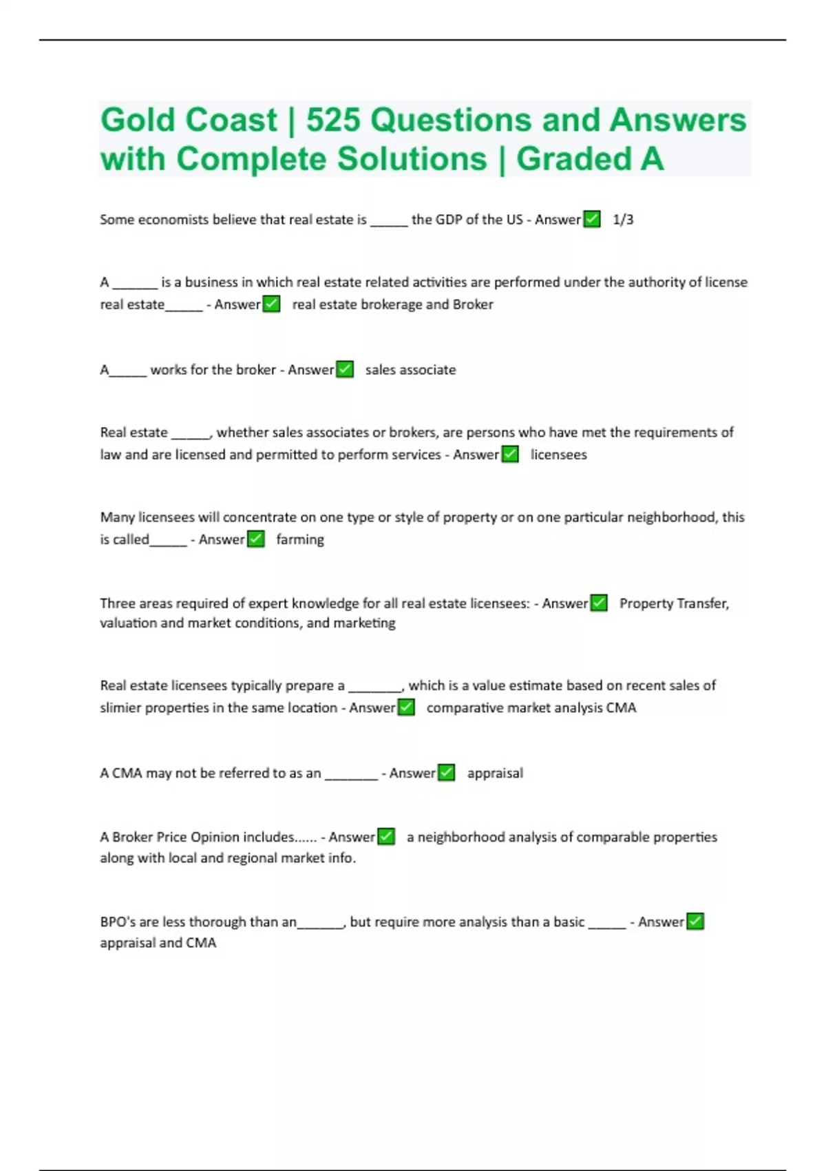 gold coast | 525 questions and answers with comple