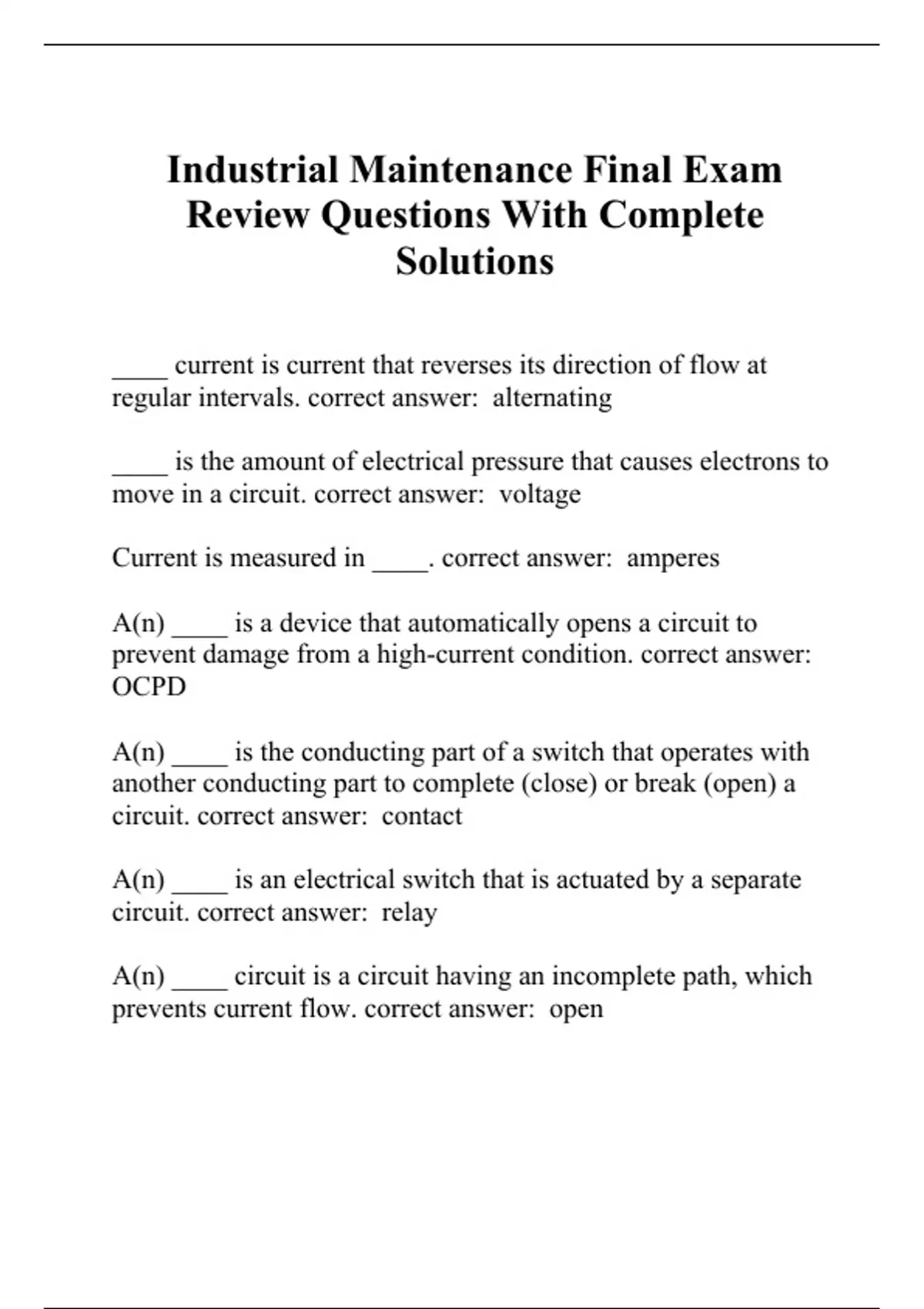 Industrial Maintenance Final Exam Review Questions With Complete Solutions