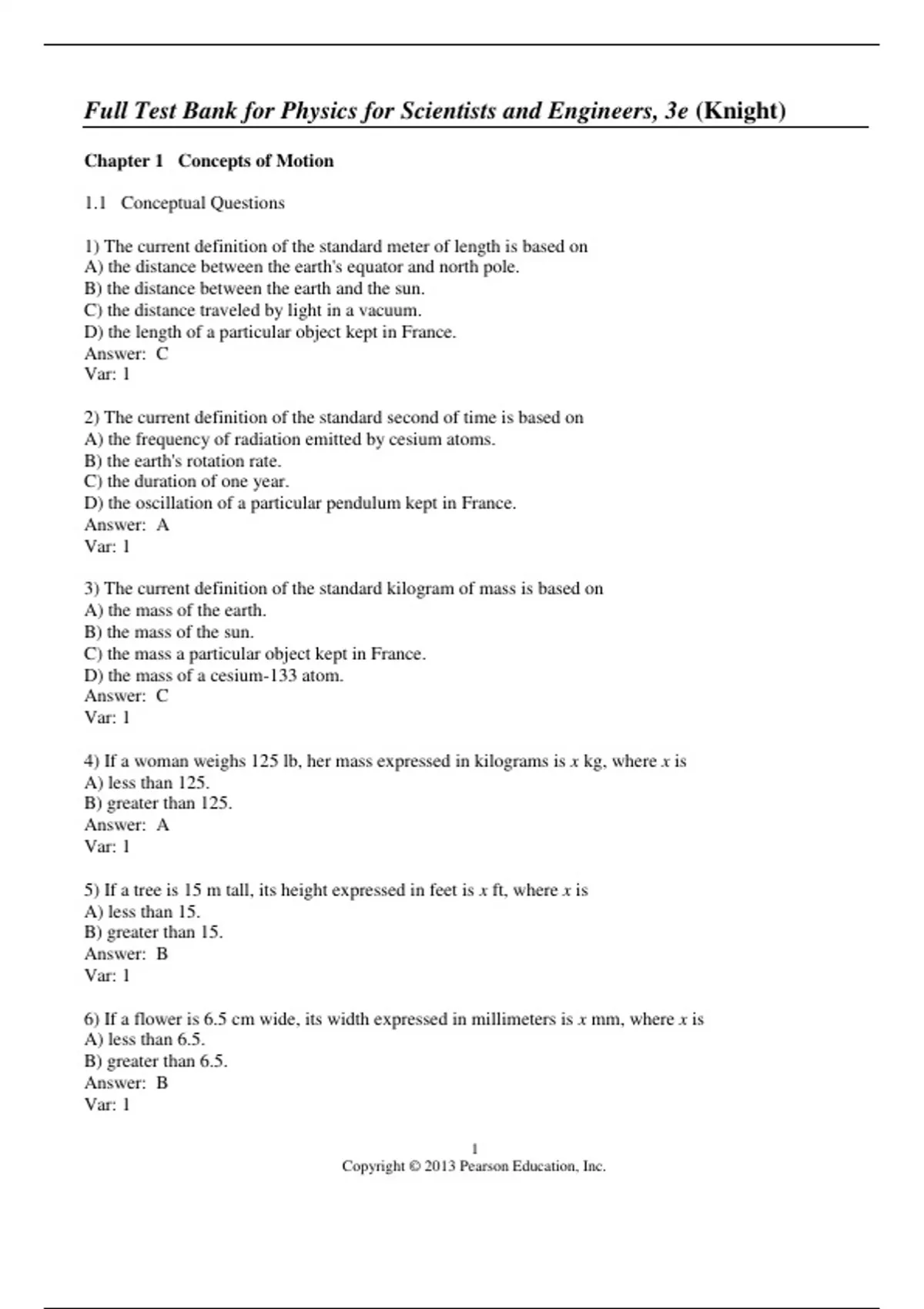 Full Test Bank for Physics for Scientists and Engineers, 3e (Knight)