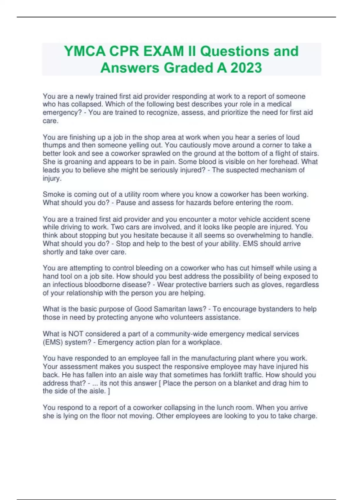 YMCA CPR EXAM II Questions and Answers Graded A 2023