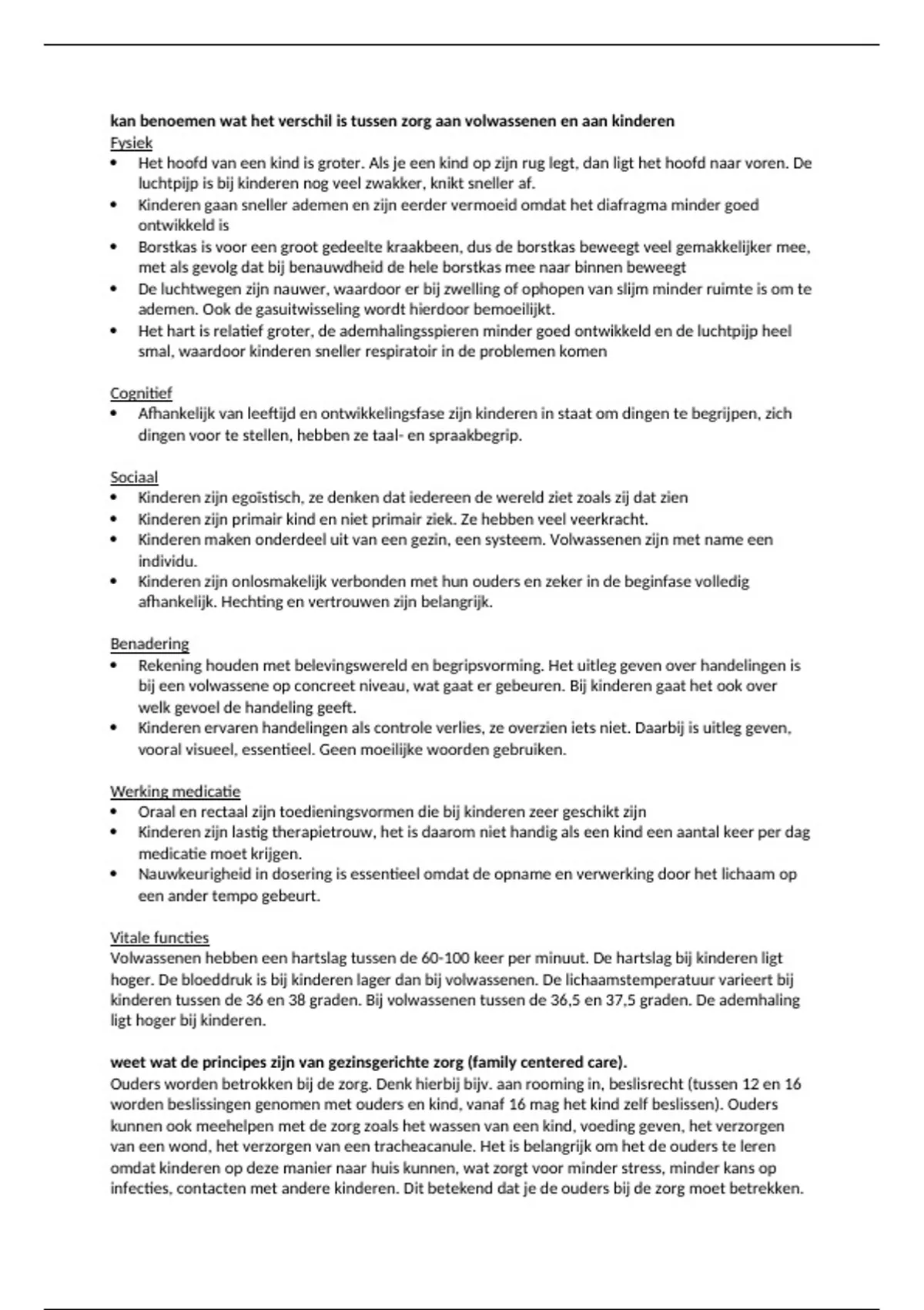 kan benoemen wat het verschil is tussen zorg aan volwassenen en aan kinderen