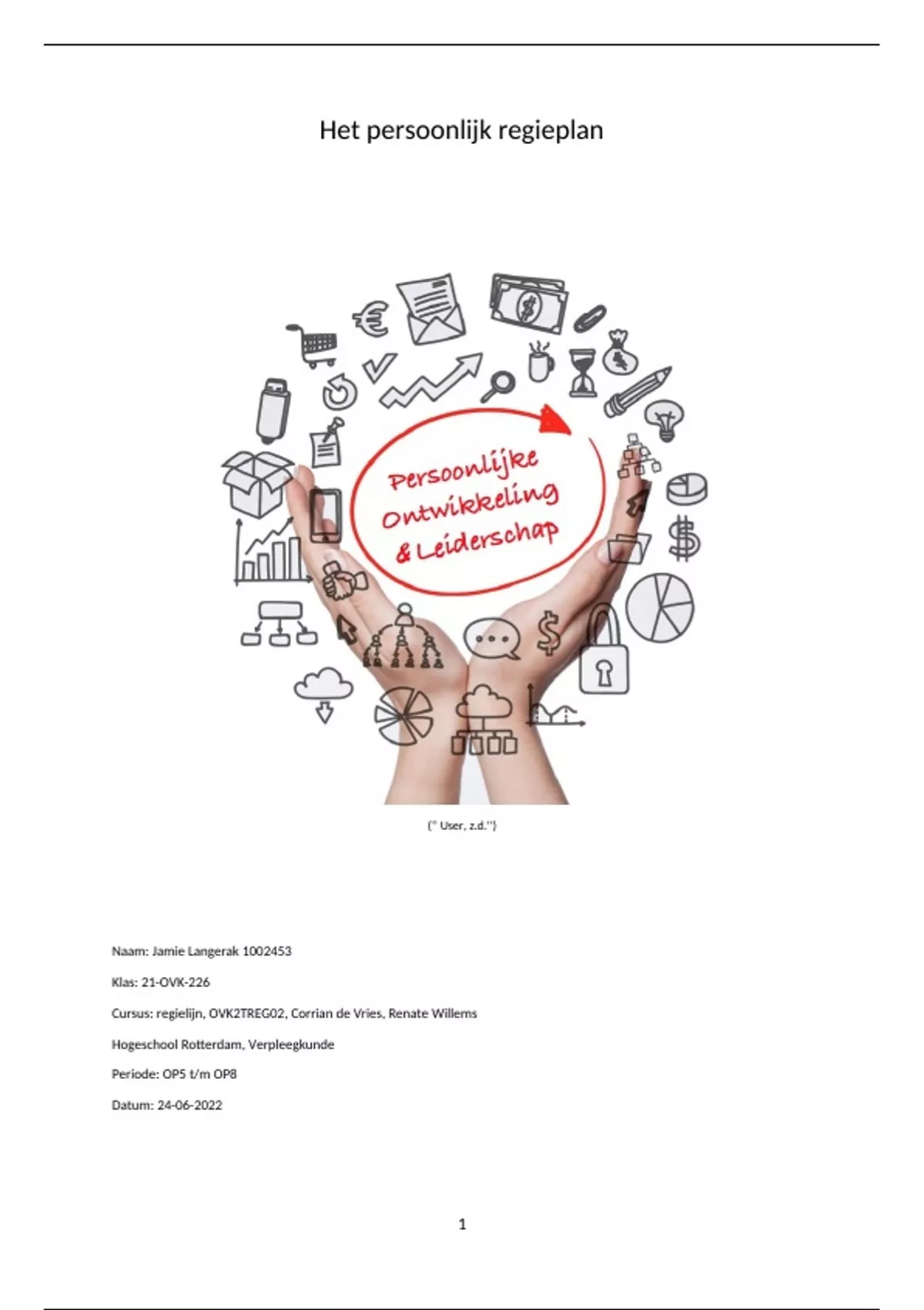 tijdens mijn stage. Al met al helpt de regielijn mij om stil te staan bij wie ik ben en hoe ik mezelf