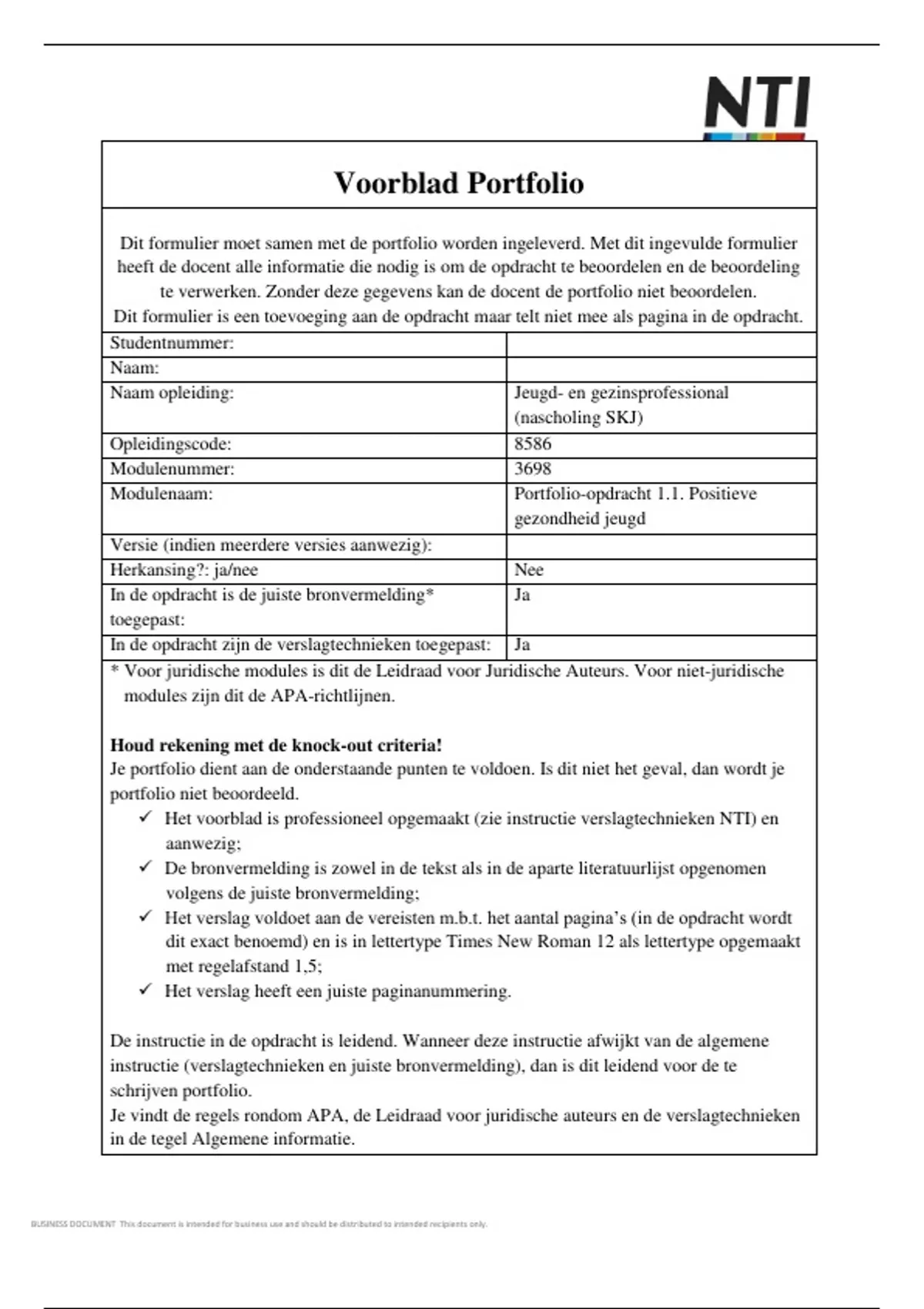 Dit formulier moet samen met de portfolio worden ingeleverd. Met dit ingevulde formulier