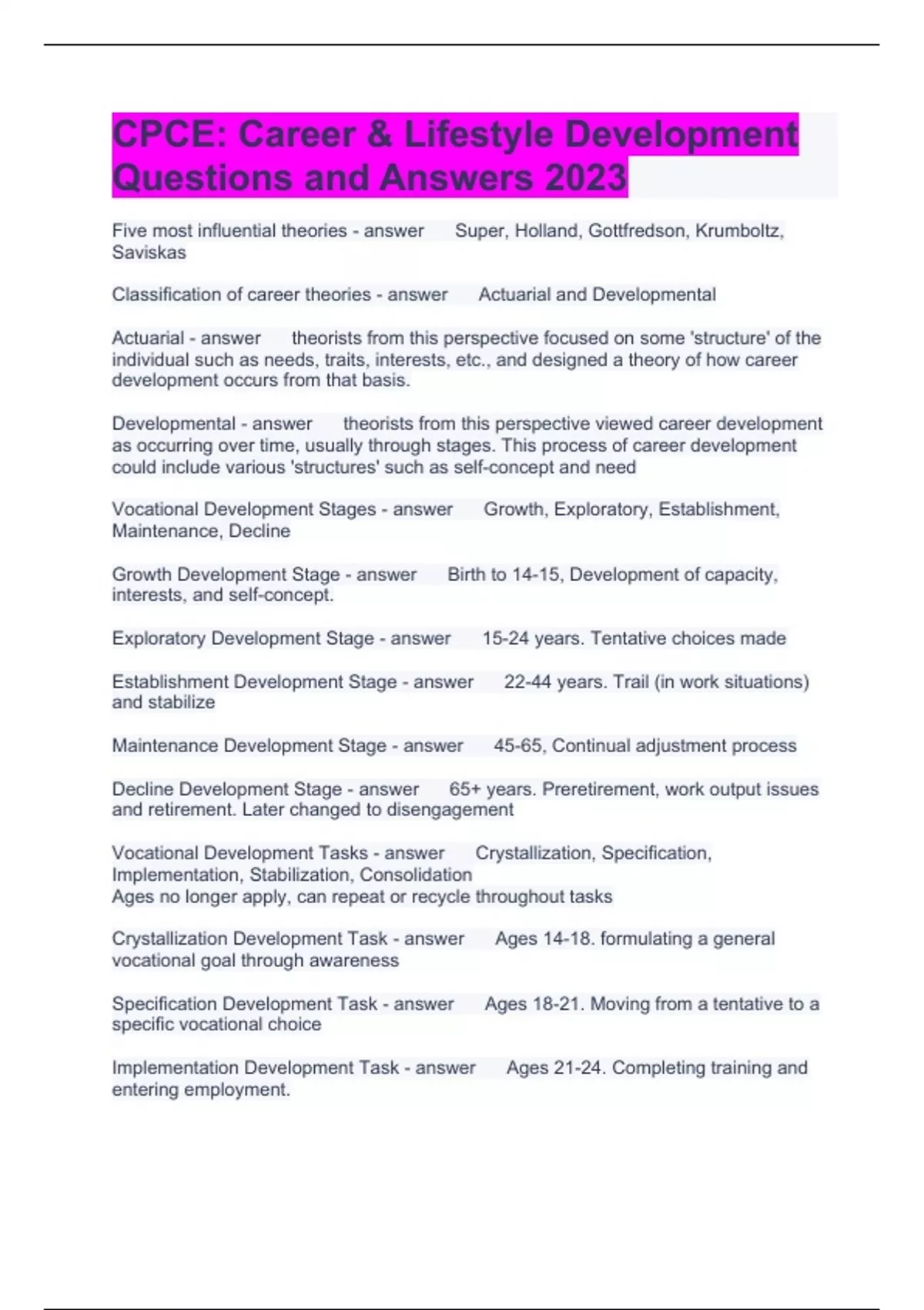 CPCE: Career & Lifestyle Development Questions and Answers 2023