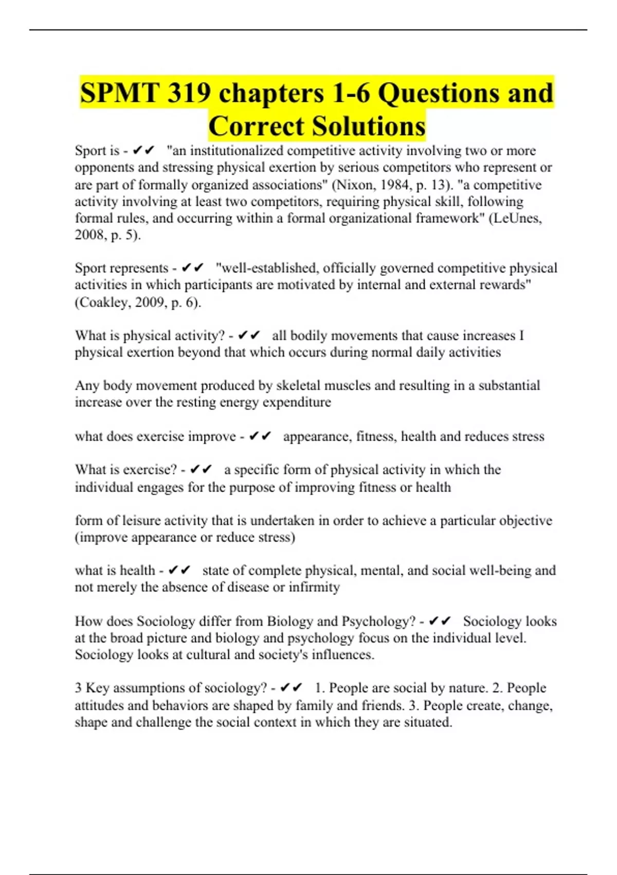 SPMT 319 chapters 1-6 Questions and Correct Solutions