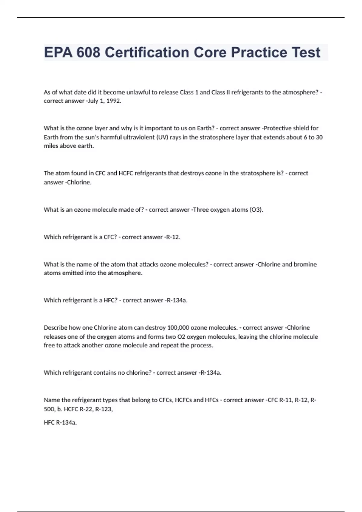 EPA 608 Certification Core Practice Test exam 2023 with 100% correct answers