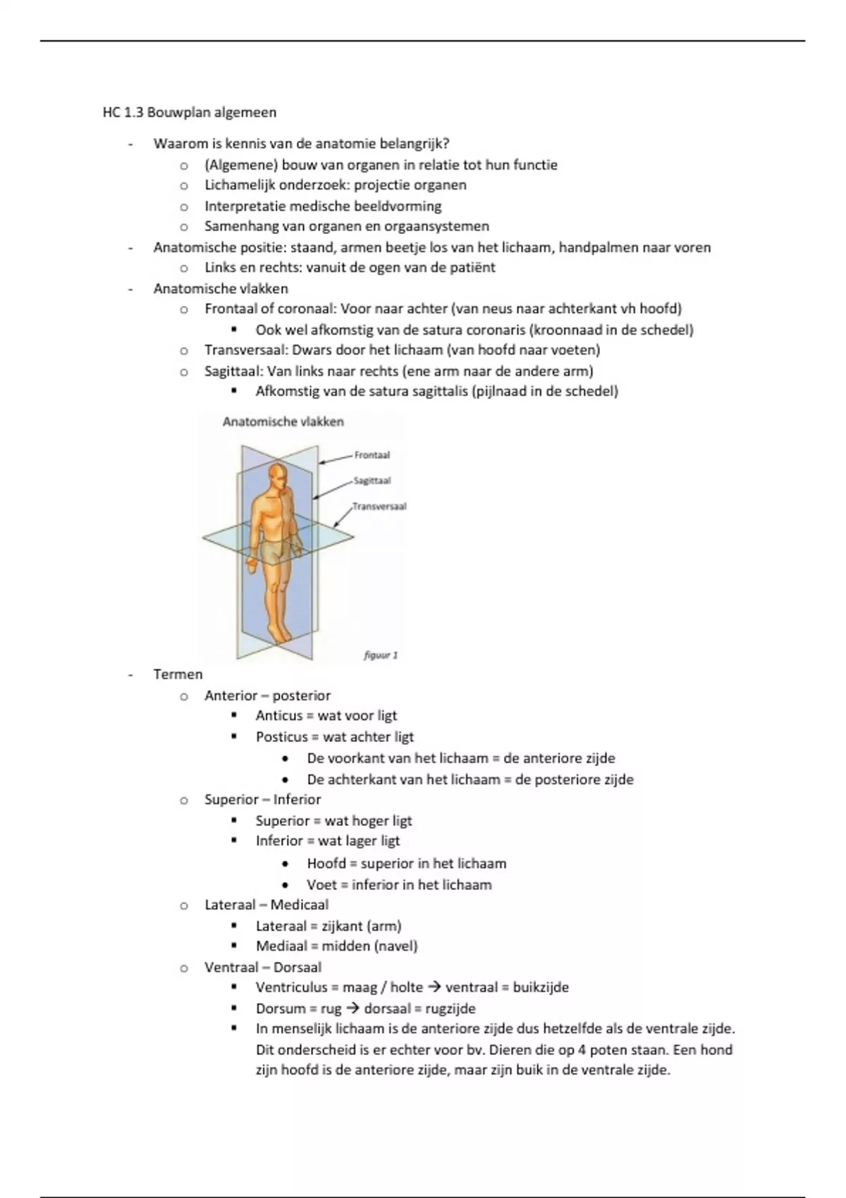 o Transversaal: Dwars door het lichaam (van hoofd naar voeten)