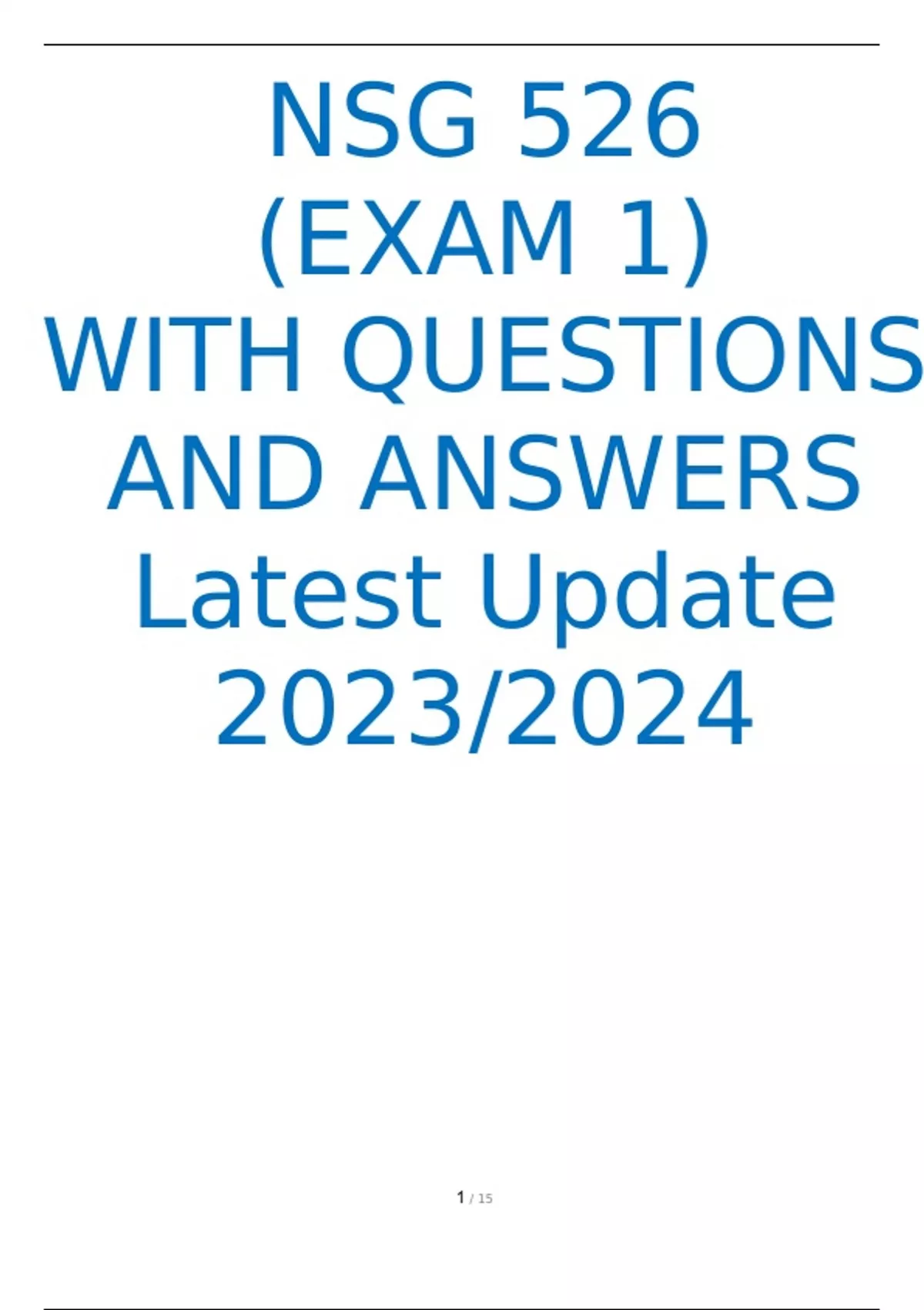 NSG 526 (EXAM 1) WITH QUESTIONS AND ANSWERS Latest Update 2023/2024