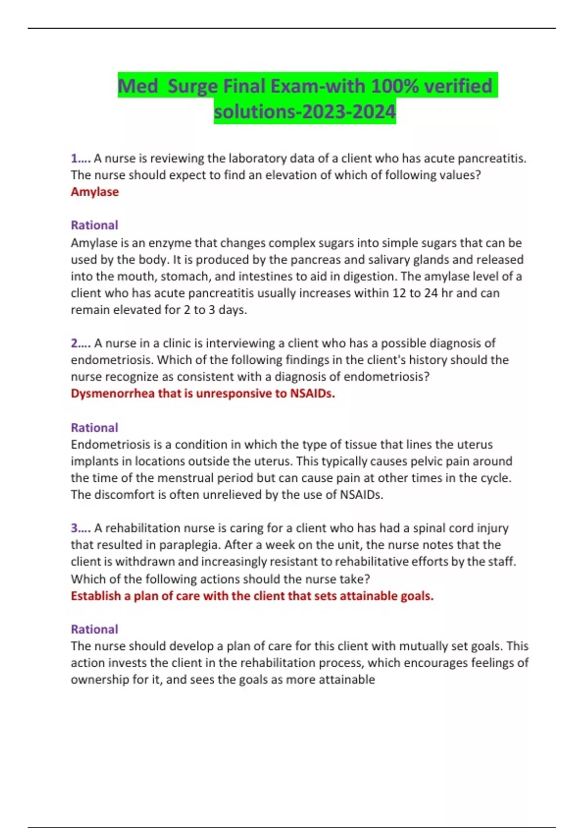 Med Surge Final Exam-with 100% verified solutions-