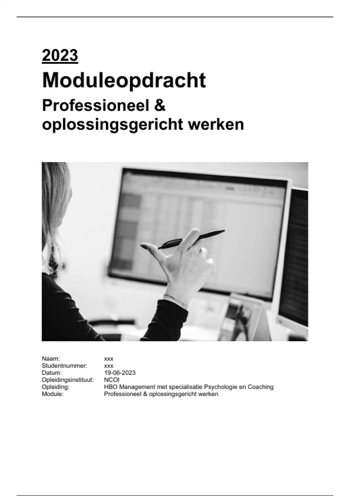 oplossingsgericht werken. Met deze moduleopdracht wordt aangetoond dat ik aan de hand van