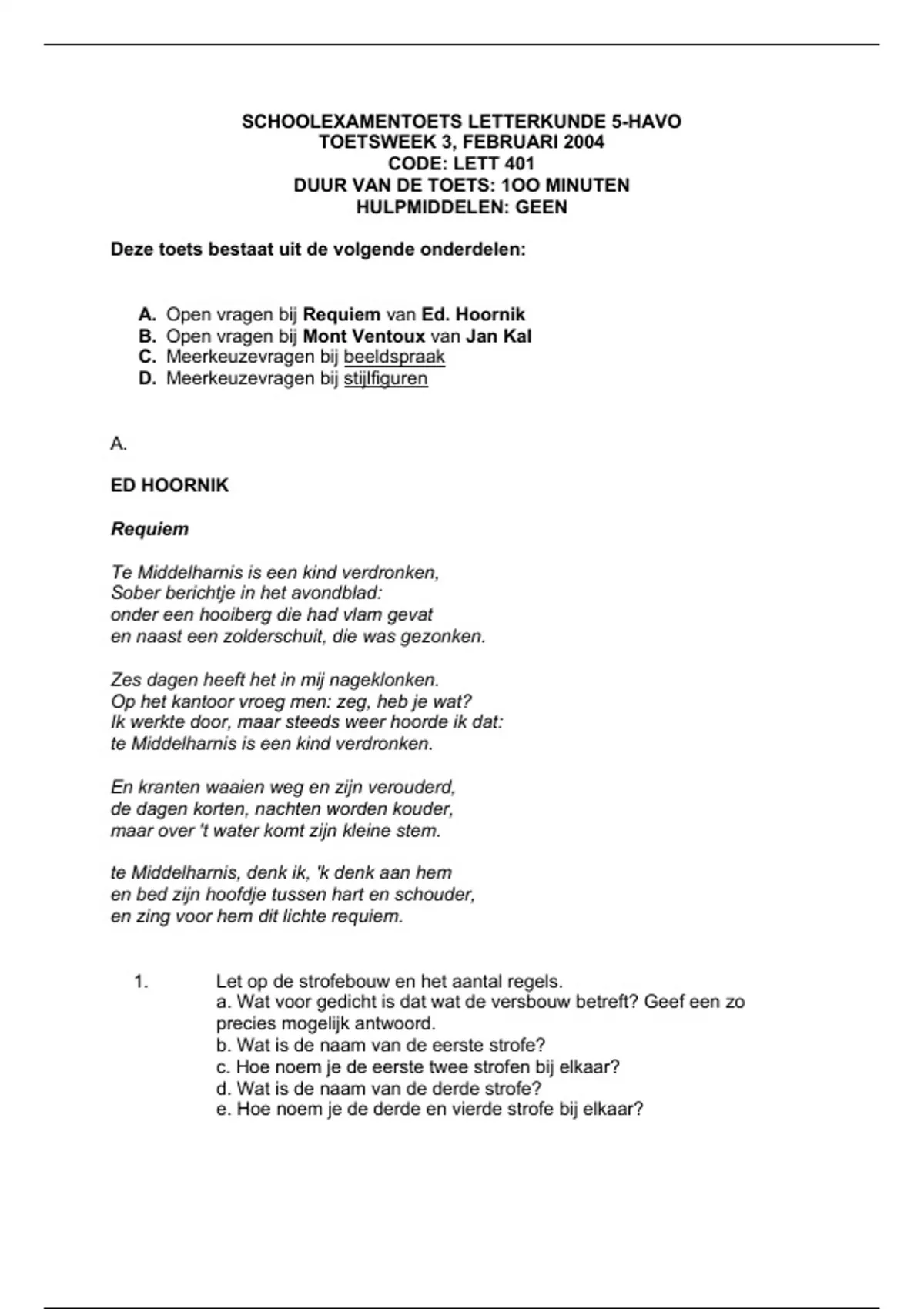A. Open vragen bij Requiem van Ed. Hoornik