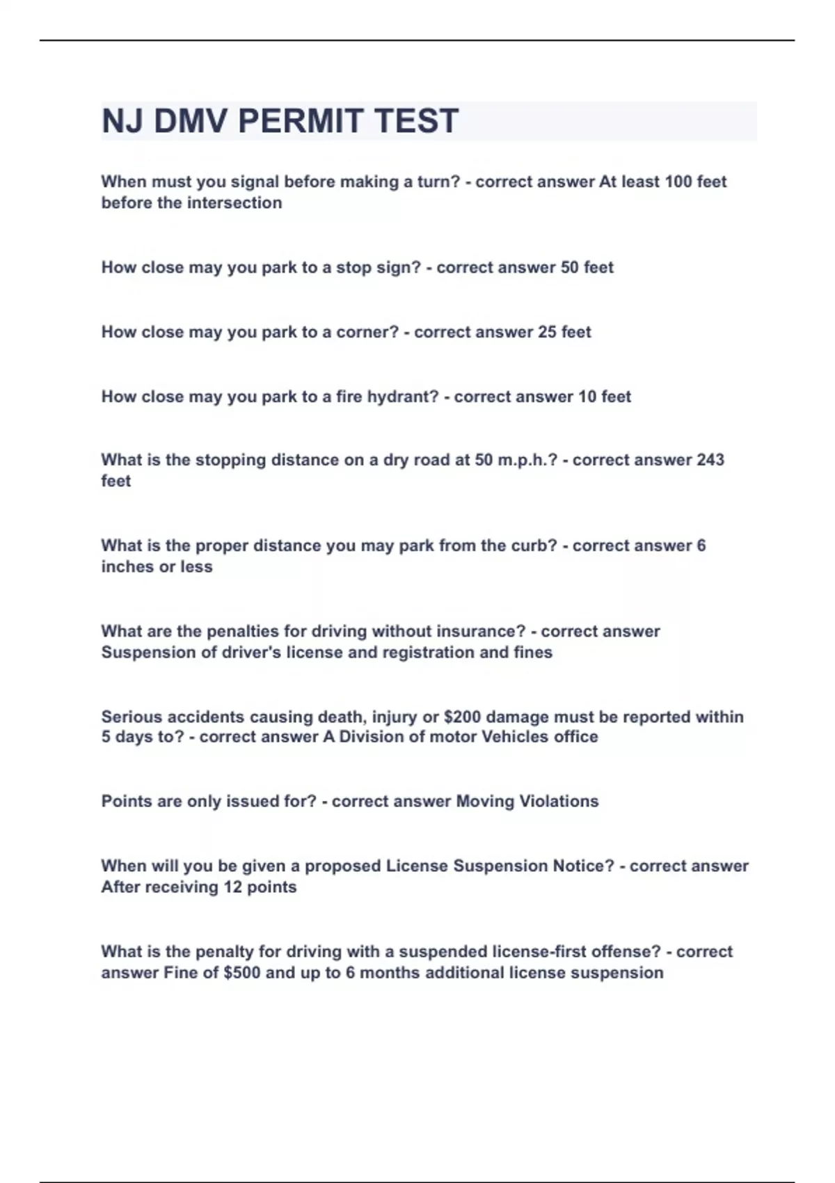 NJ DMV PERMIT TEST|UPDATED&VERIFIED|100% SOLVED|GUARANTEED SUCCESS