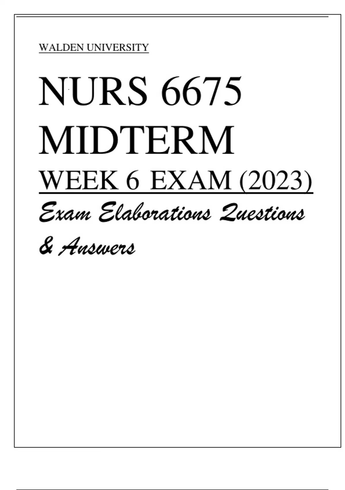 WALDEN UNIVERSITY NURS 6675 MIDTERM WEEK 6 EXAM (2023) Exam Elaborations Questions