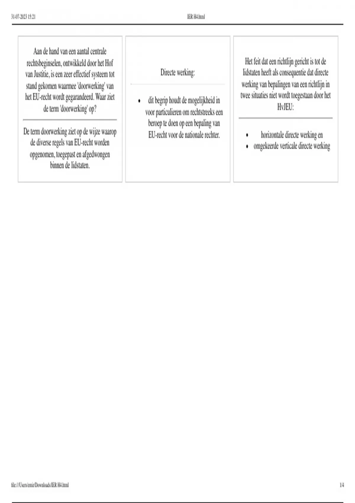 De term doorwerking ziet op de wijze waarop EU-recht voor de nationale rechter. horizontale directe werking en