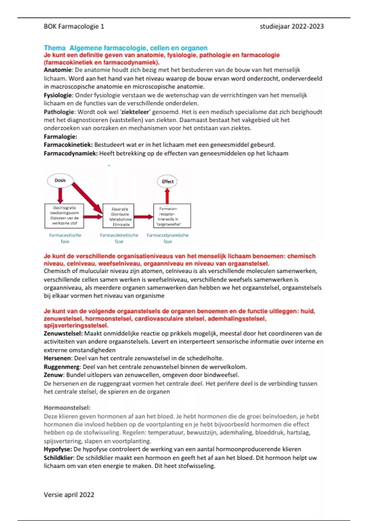 ,BOK Farmacologie 1 studiejaar 2022-2023