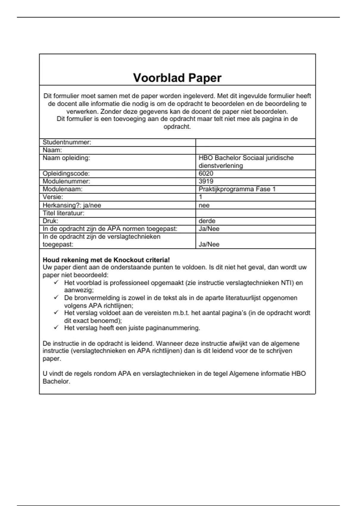 verwerken. Zonder deze gegevens kan de docent de paper niet beoordelen.