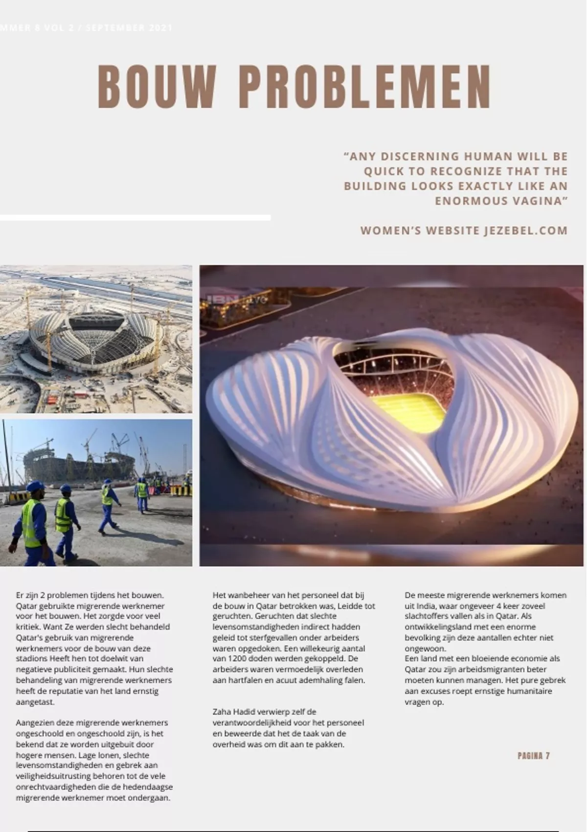 voor het bouwen. Het zorgde voor veel geruchten. Geruchten dat slechte slachtoffers vallen als in Qatar. Als