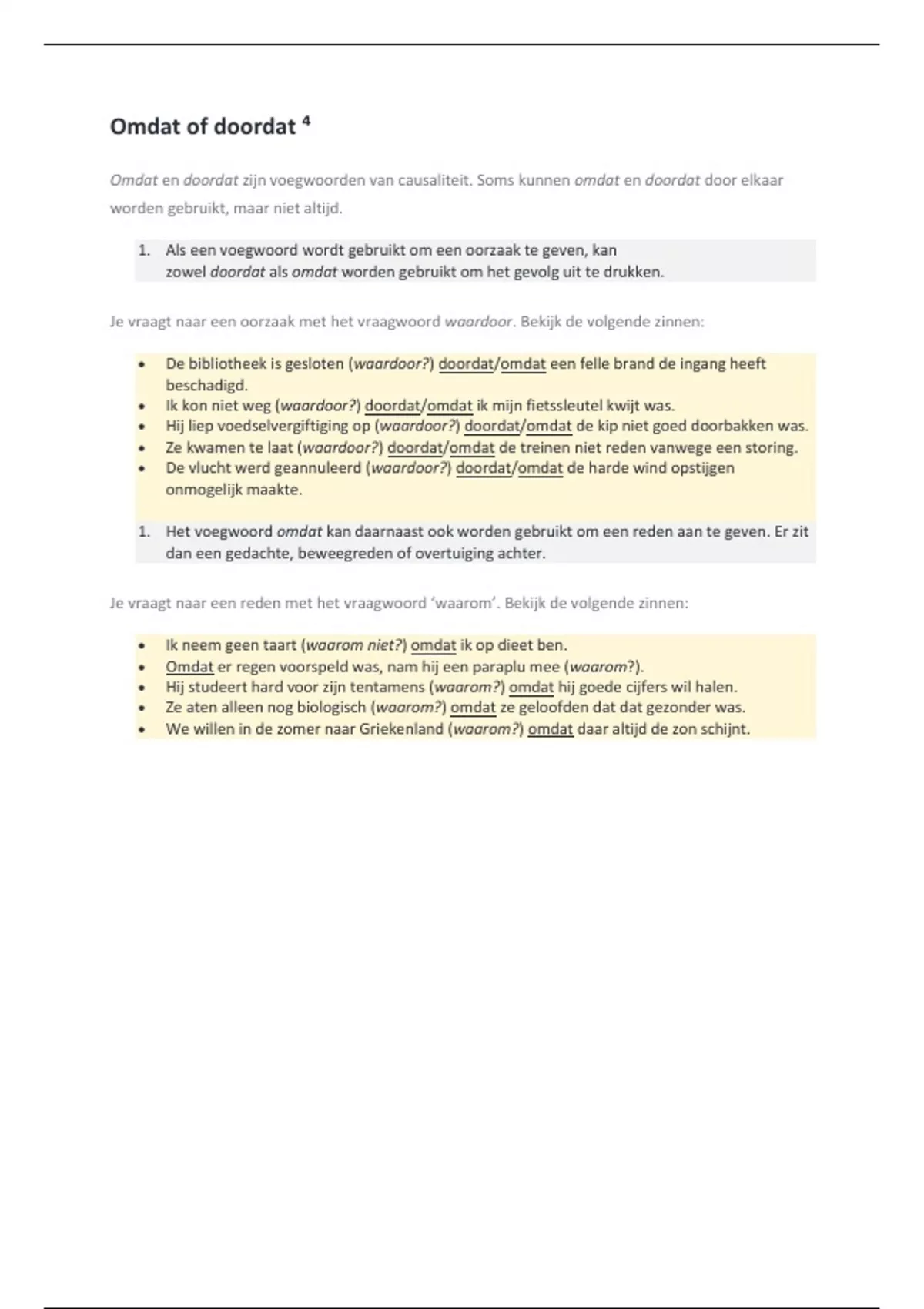 1. Als een voegwoord wordt gebruikt om een oorzaak te geven, kan