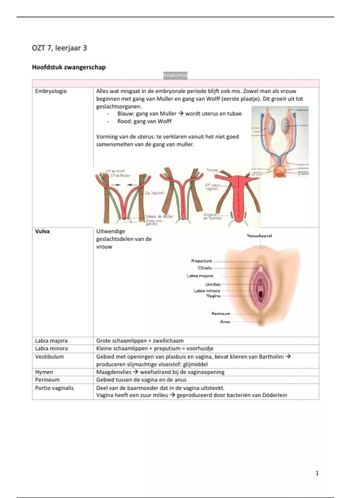 - Blauw: gang van Muller → wordt uterus en tubae