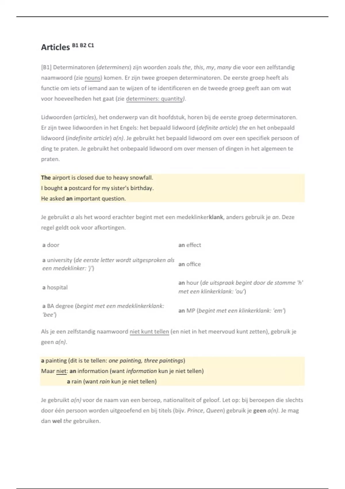 [B1] Determinatoren (determiners) zijn woorden zoals the, this, my, many die voor een zelfstandig