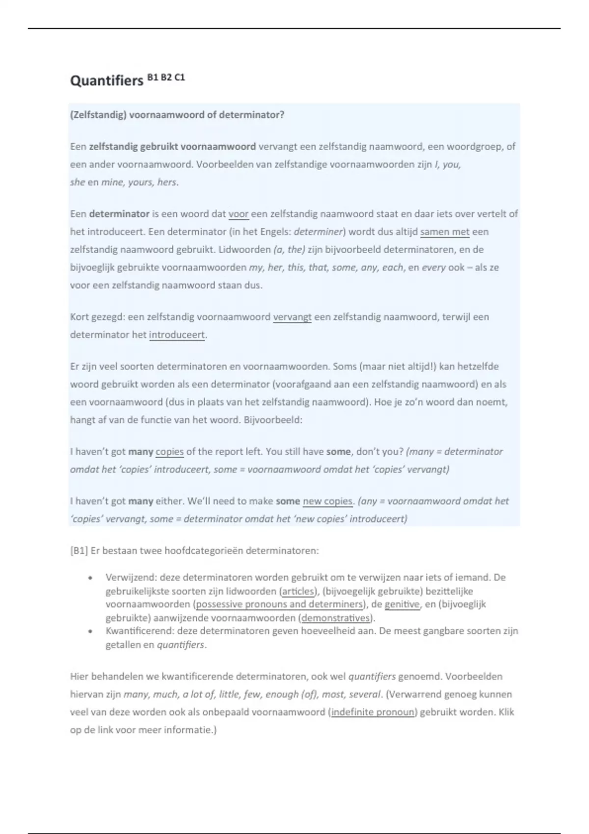 Samenvatting Quantifiers (Hogeschooltaal Engels)