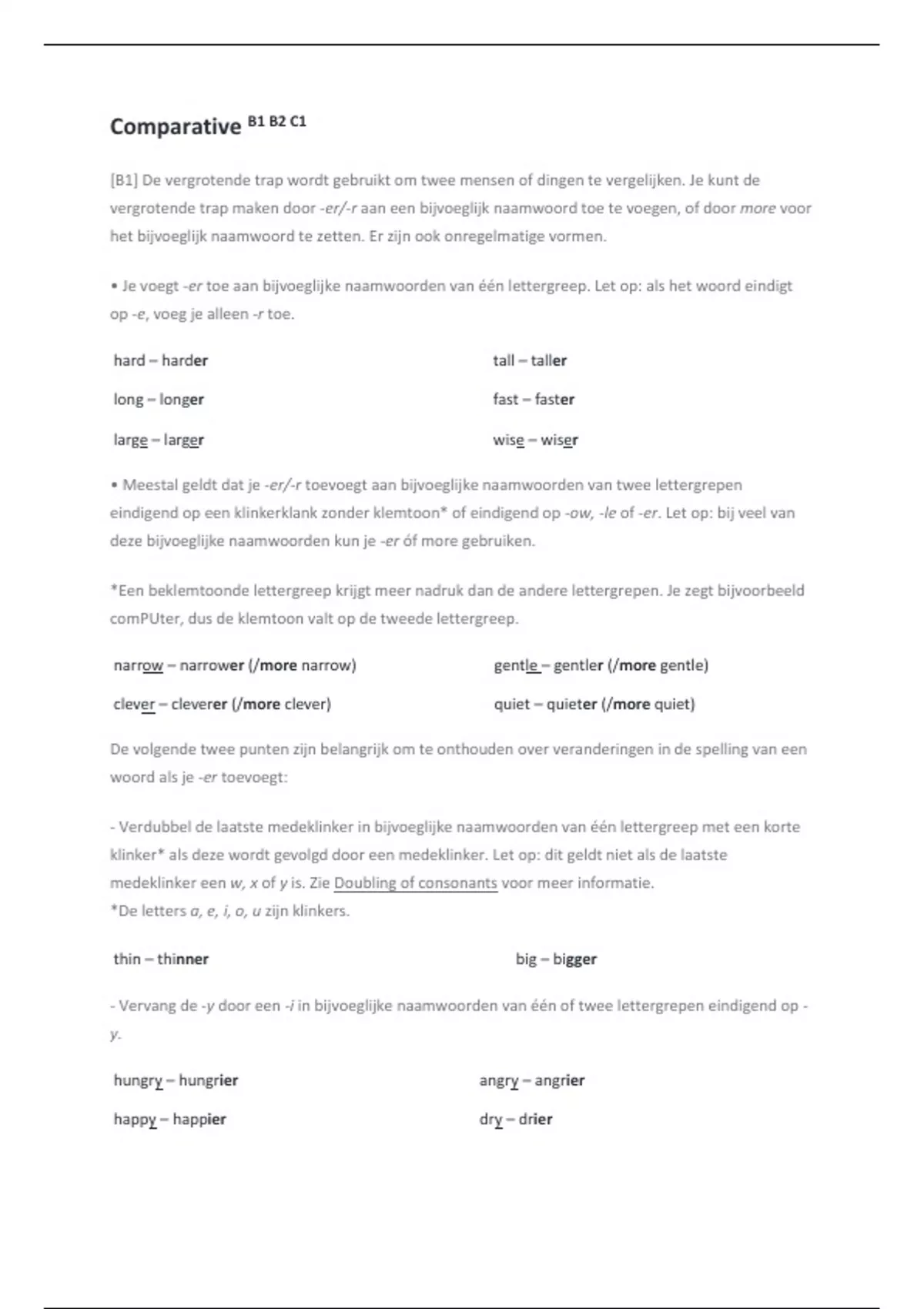 • Meestal geldt dat je -er/-r toevoegt aan bijvoeglijke naamwoorden van twee lettergrepen