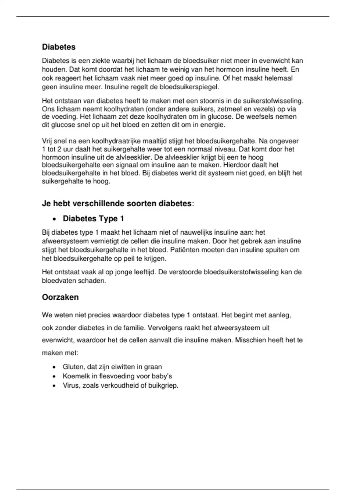Samenvatting Ziektebeeld Diabetes