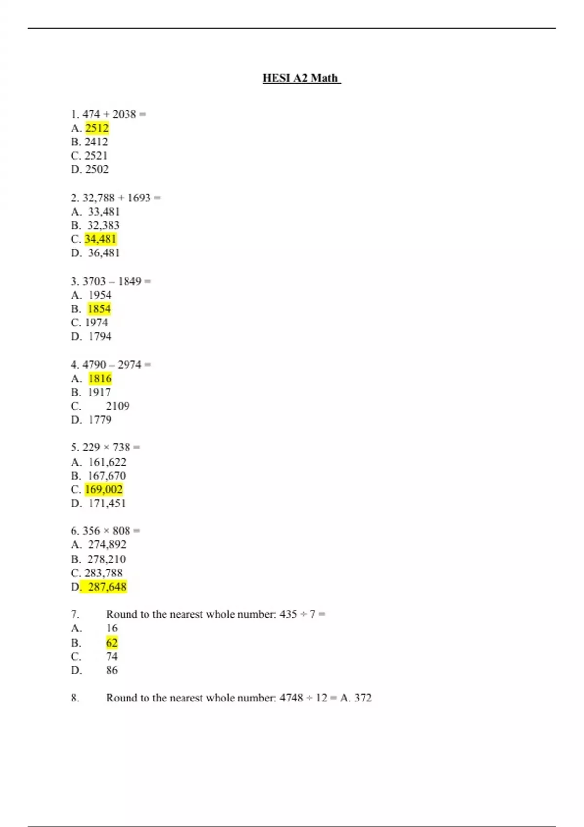 Exam of 9 pages for the course Hesi A2 Math at Hesi A2 Math (Hesi A2 Math)