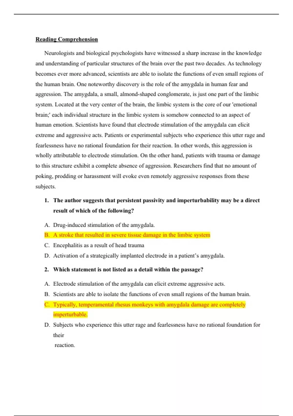 Hesi A2 Reading Comprehension