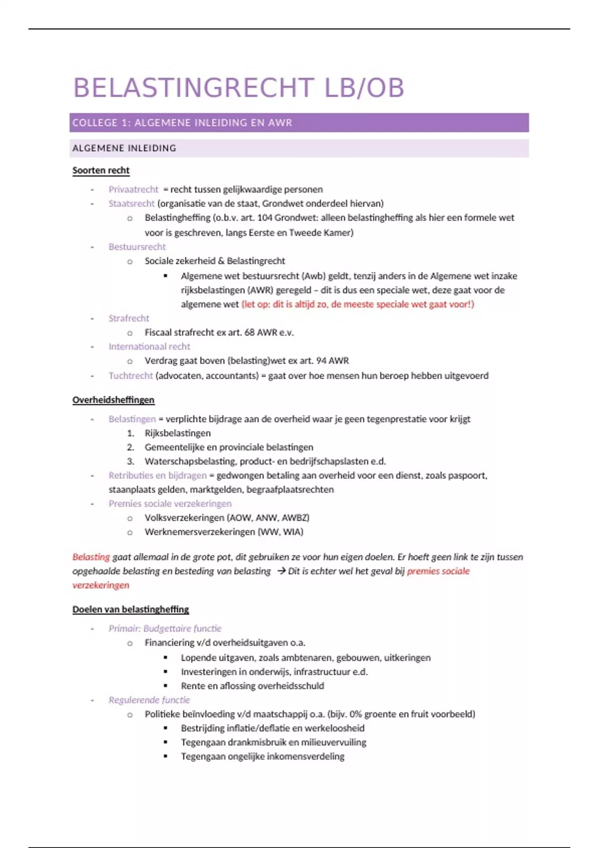 - Belastingen = verplichte bijdrage aan de overheid waar je geen tegenprestatie voor krijgt