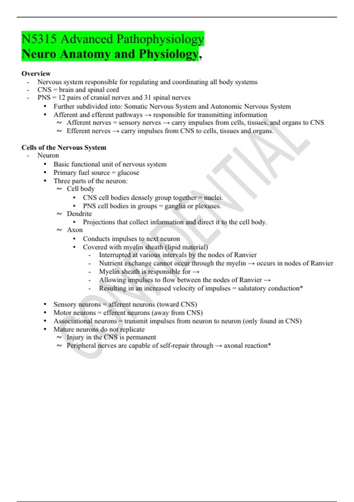 N5315 Advanced Pathophysiology Neuro Anatomy and Physiology N5315 Advanced Pathophysiology Neuro Anatomy and Physiology N5315 Advanced Pathophysiology Neuro Anatomy and Physiology