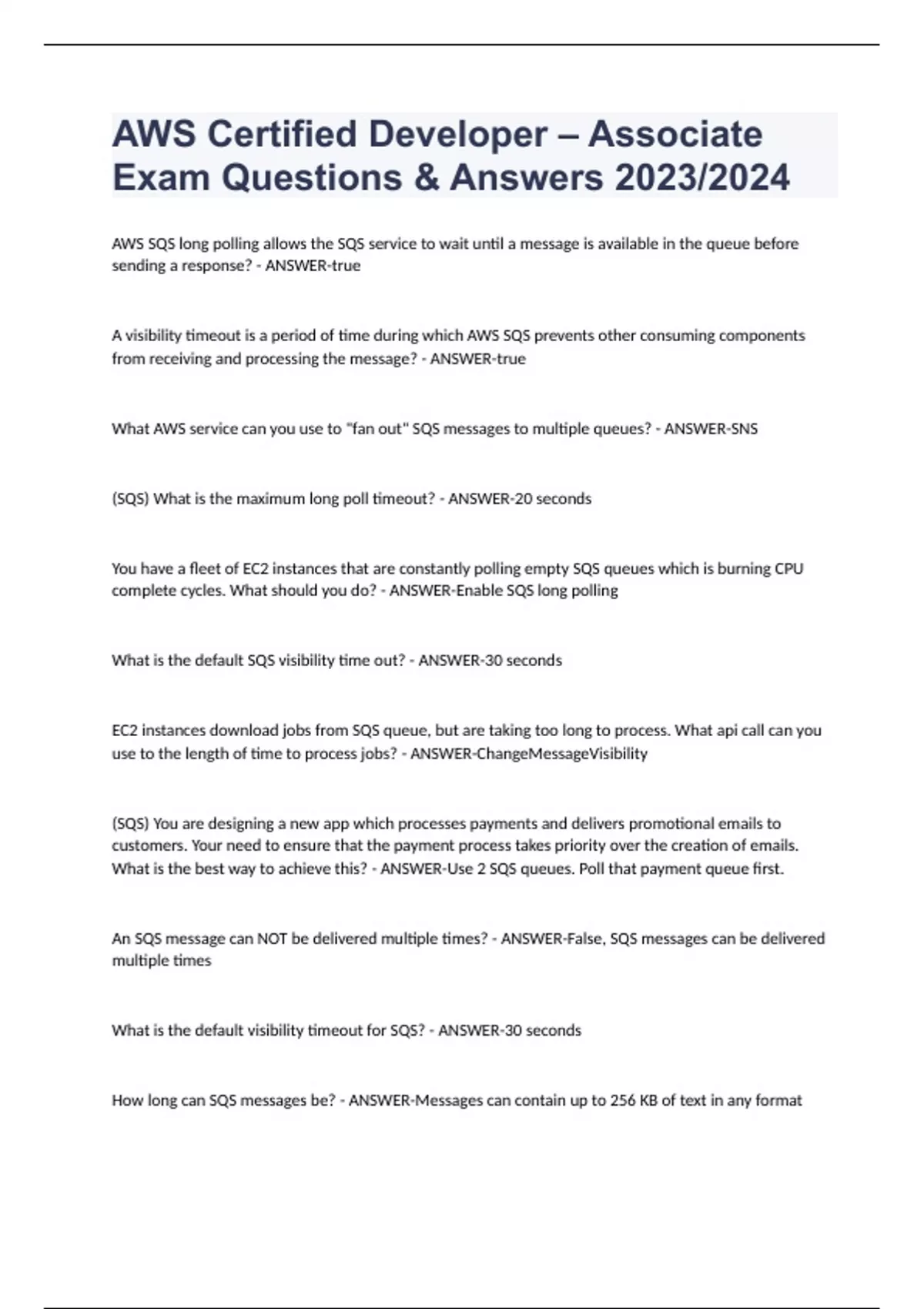 (SQS) What is the maximum long poll timeout? - ANSWER-20 seconds