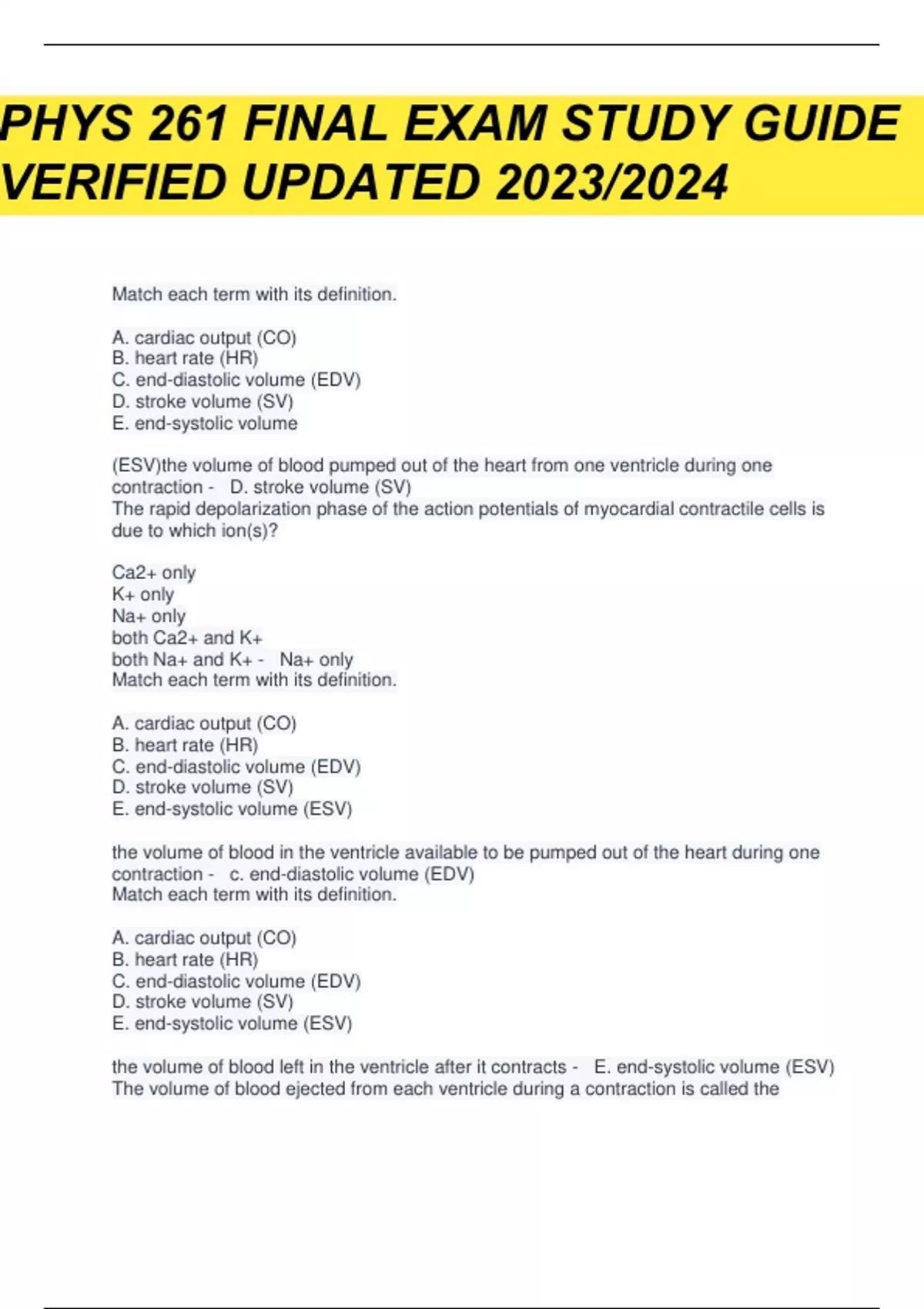 PHYS 261 FINAL EXAM study guide Q&A verified 2023/2024 updates