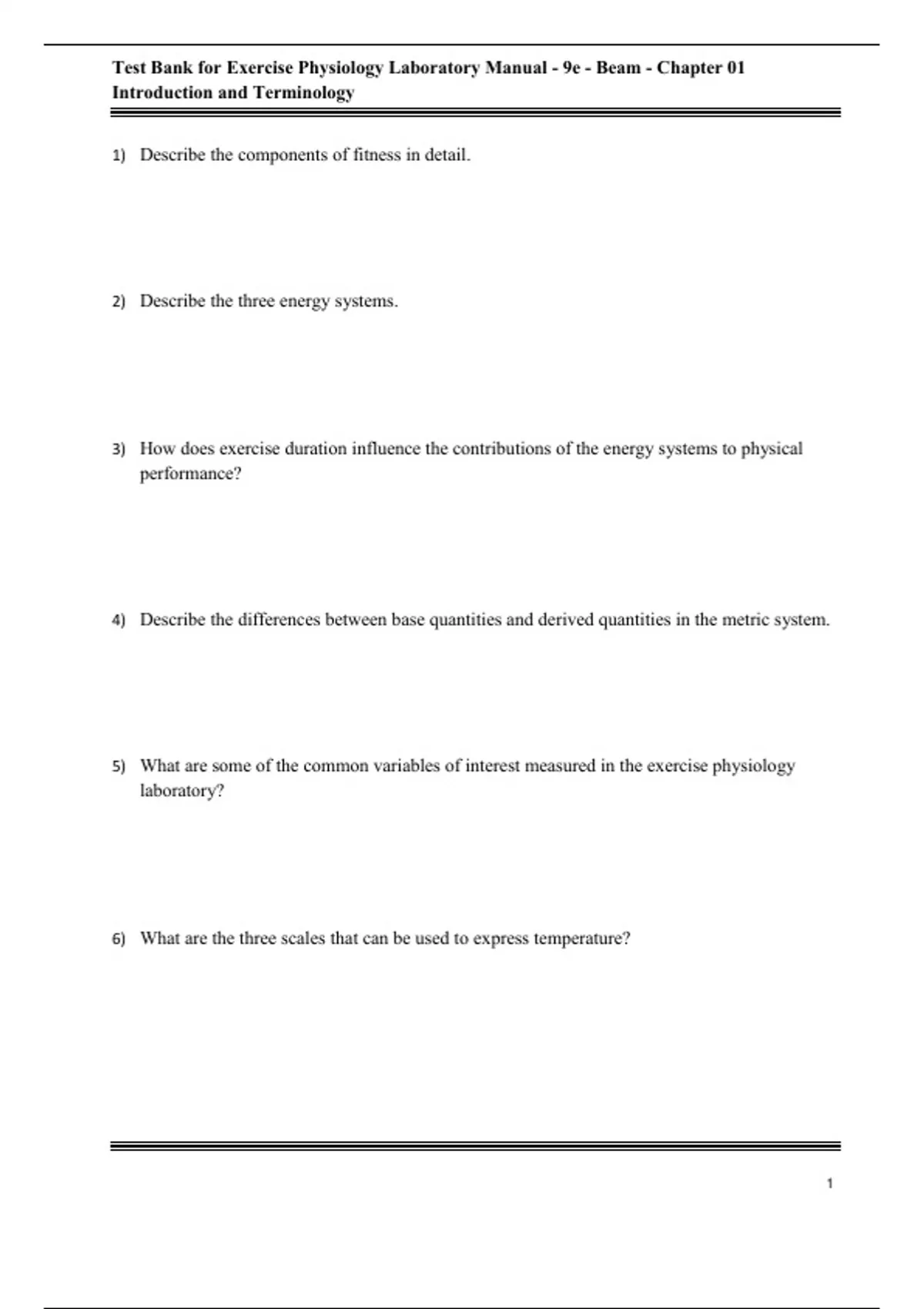 Test Bank For Exercise Physiology Laboratory Manual, 9th Edition All Chapters -