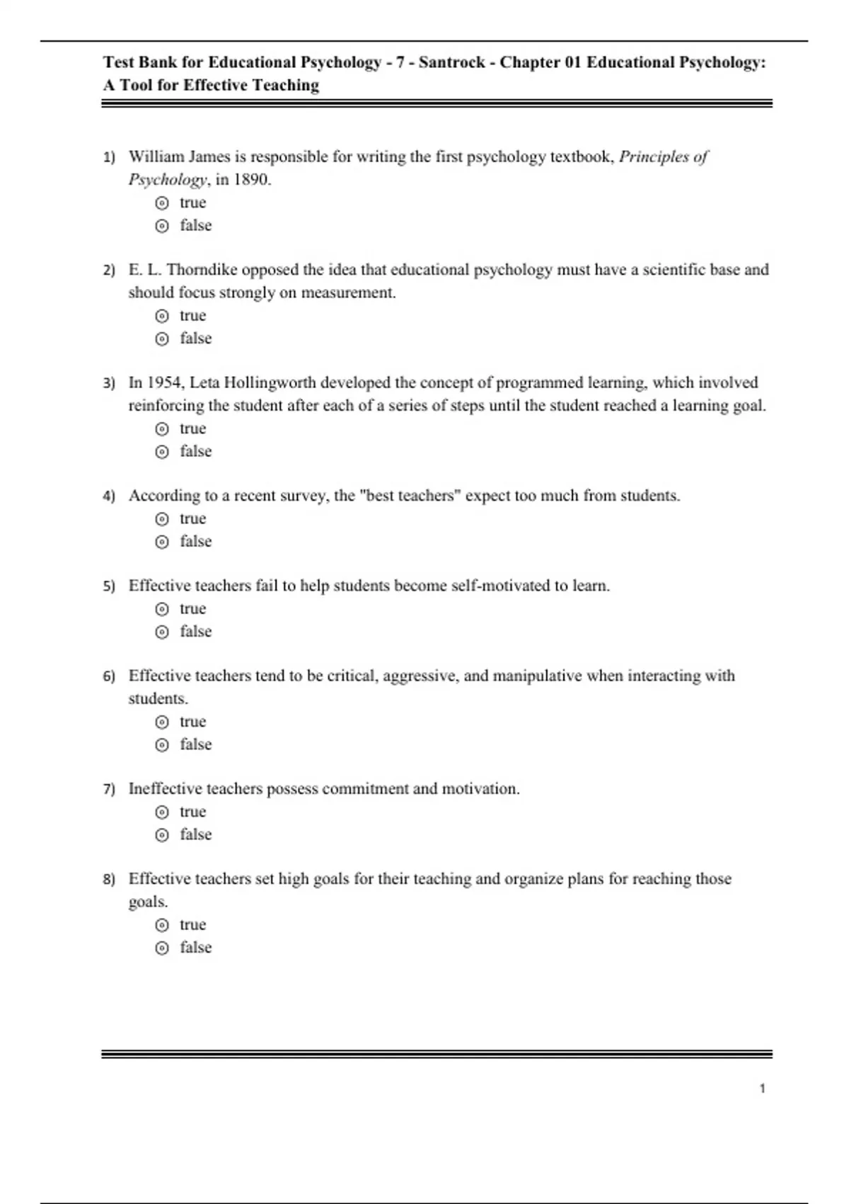 Test Bank For Educational Psychology, 7th Edition All Chapters - 9781260237771