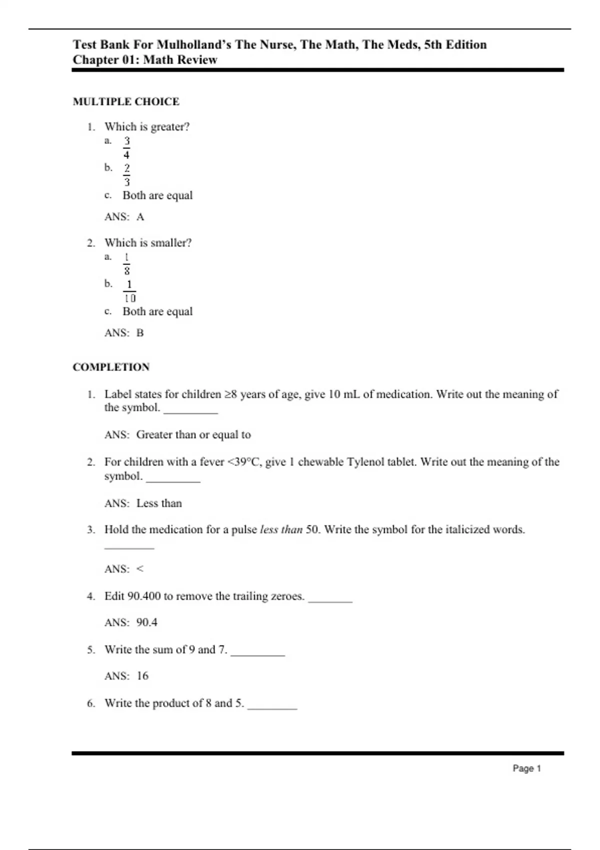 Test Bank For The Nurse, The Math, The Meds, 5th - 2023 All Chapters -