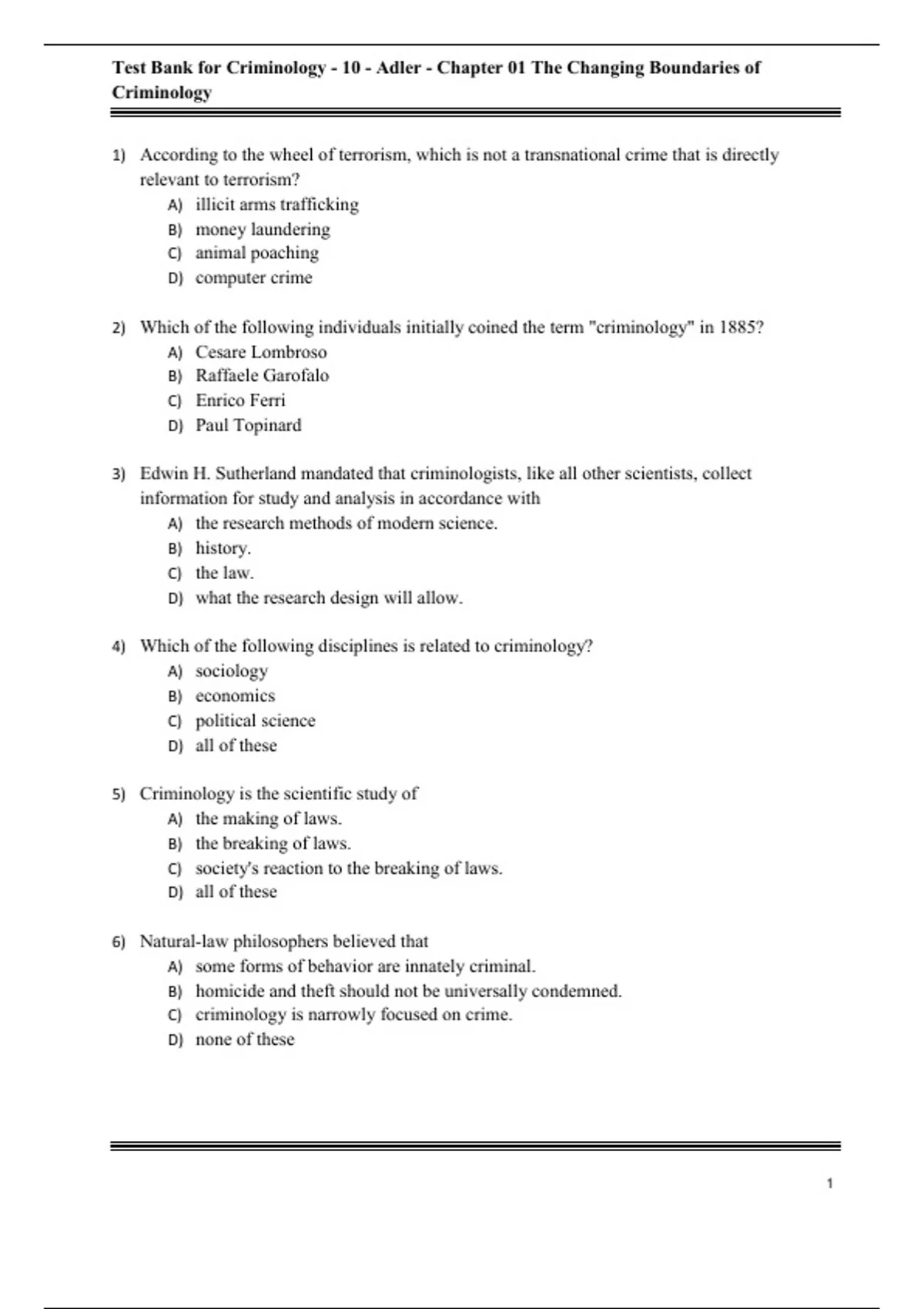 Test Bank For Criminology, 10th Edition All Chapters - 9781260837001