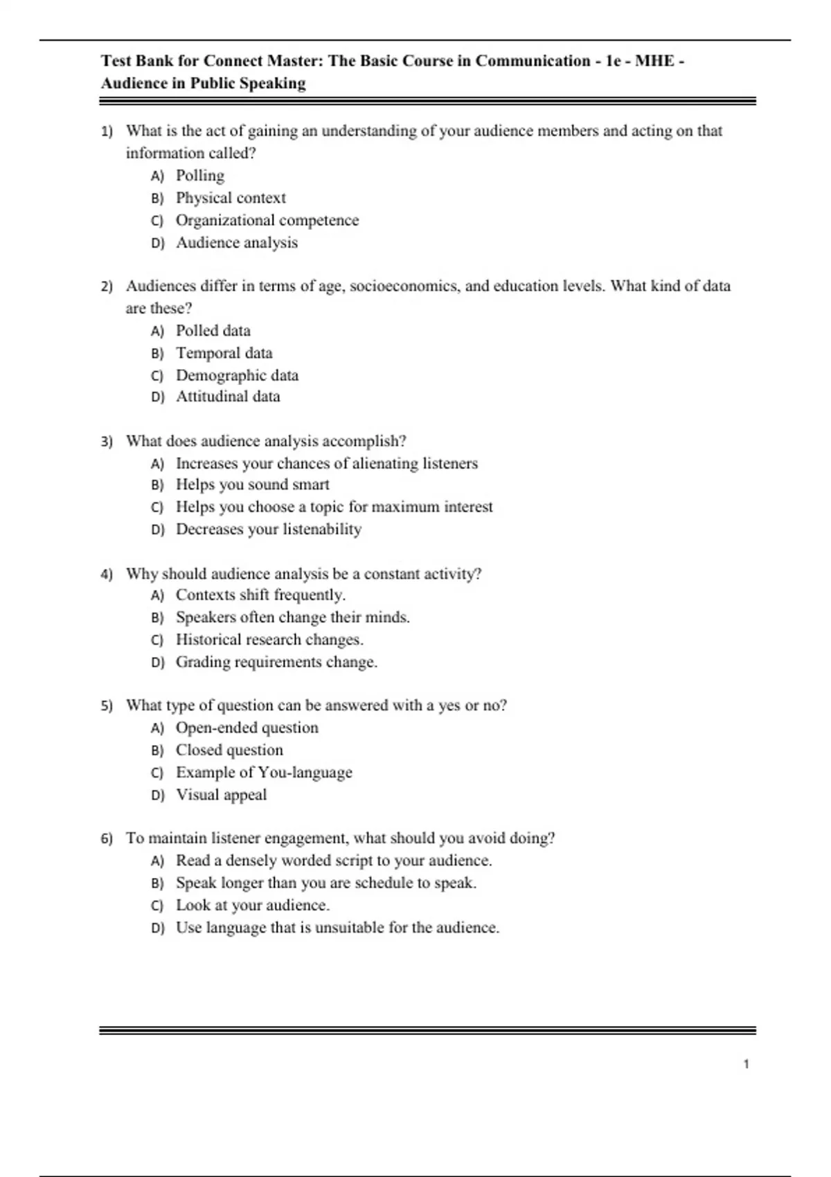 Test Bank For Connect Master: The Basic Course in Communication, 1st Edition All Chapters -