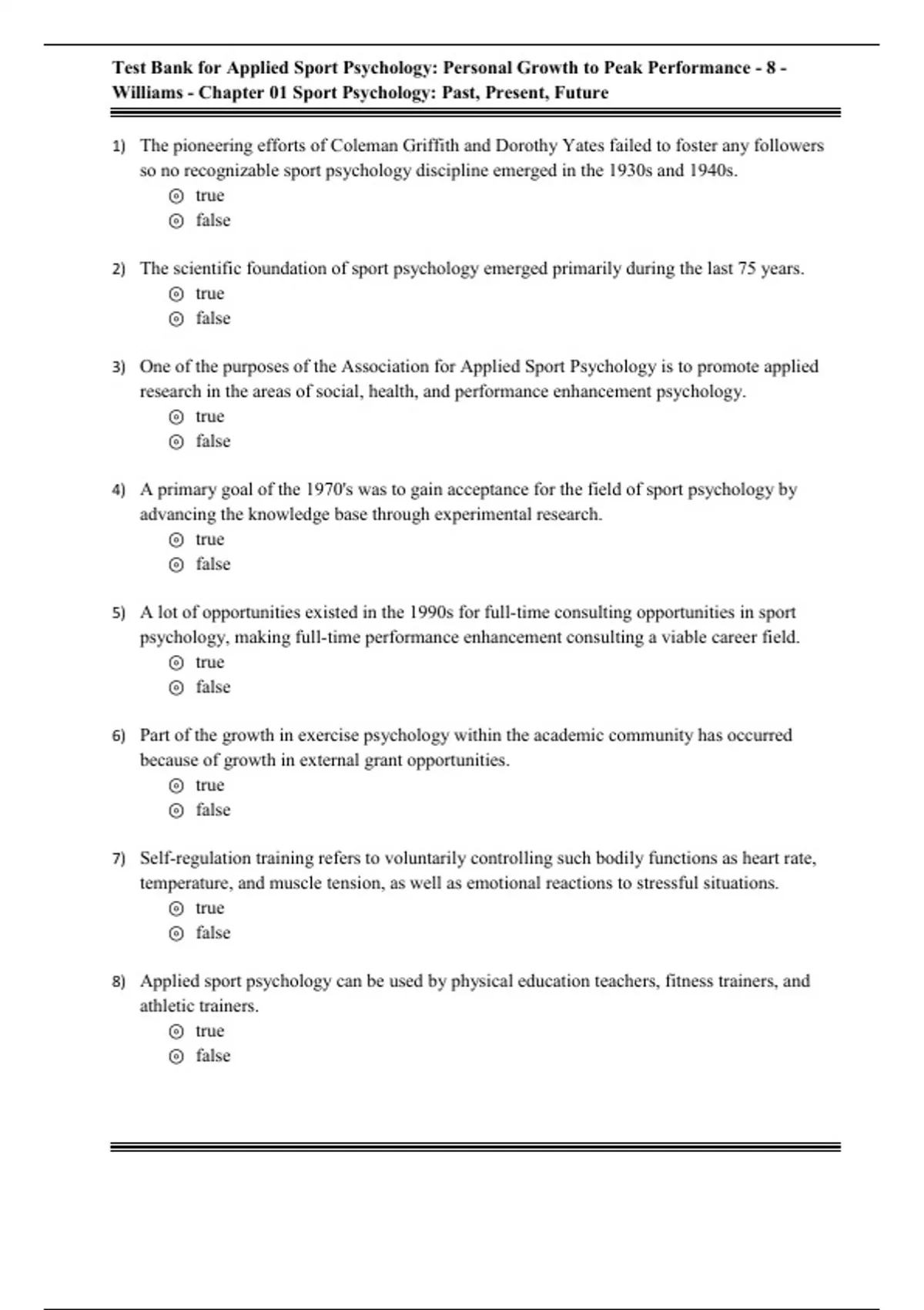 Test Bank For Applied Sport Psychology: Personal Growth to Peak Performance, 8th Edition All Chapters - 9781259922398