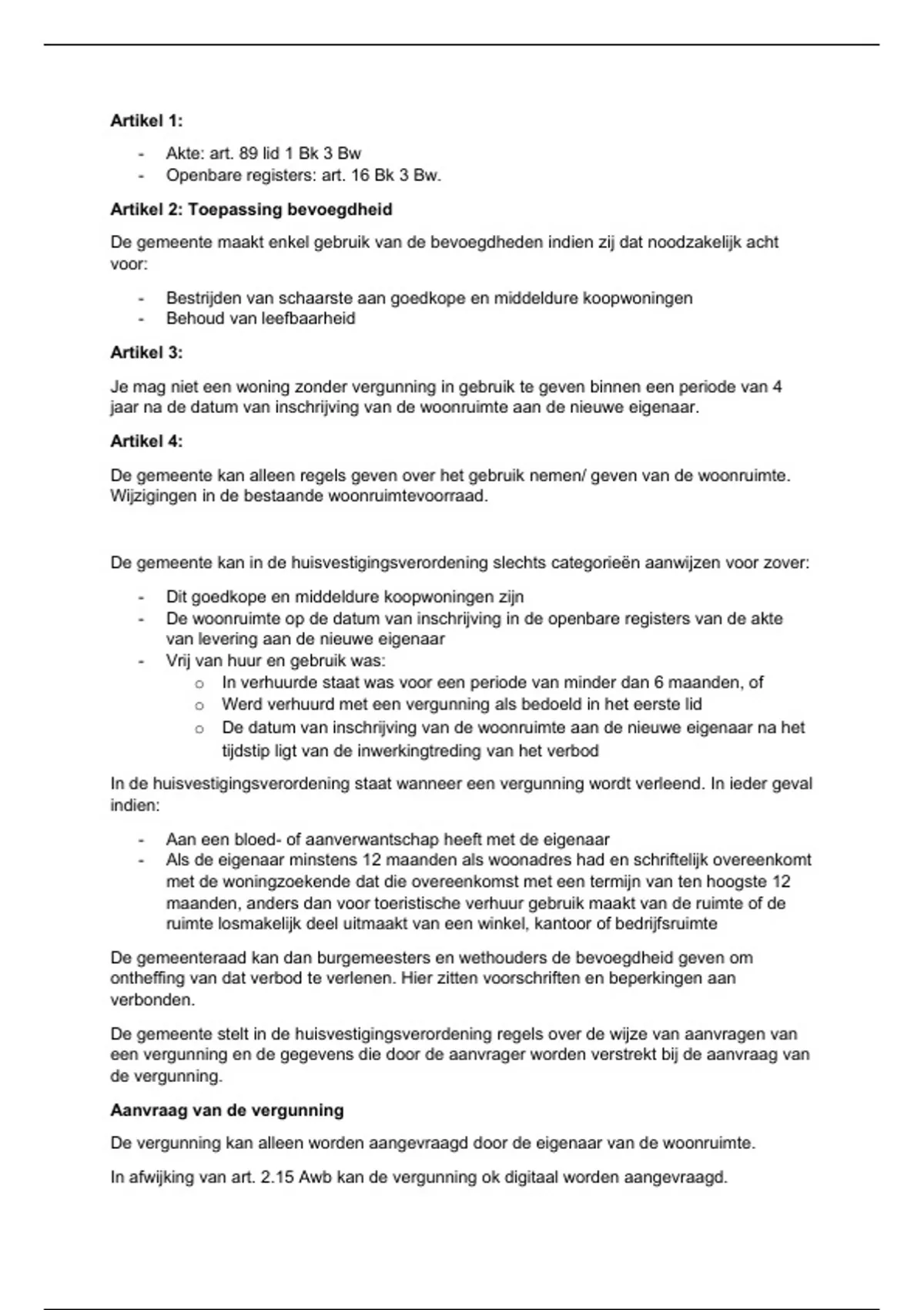 De gemeente kan in de huisvestigingsverordening slechts categorieën aanwijzen voor zover: