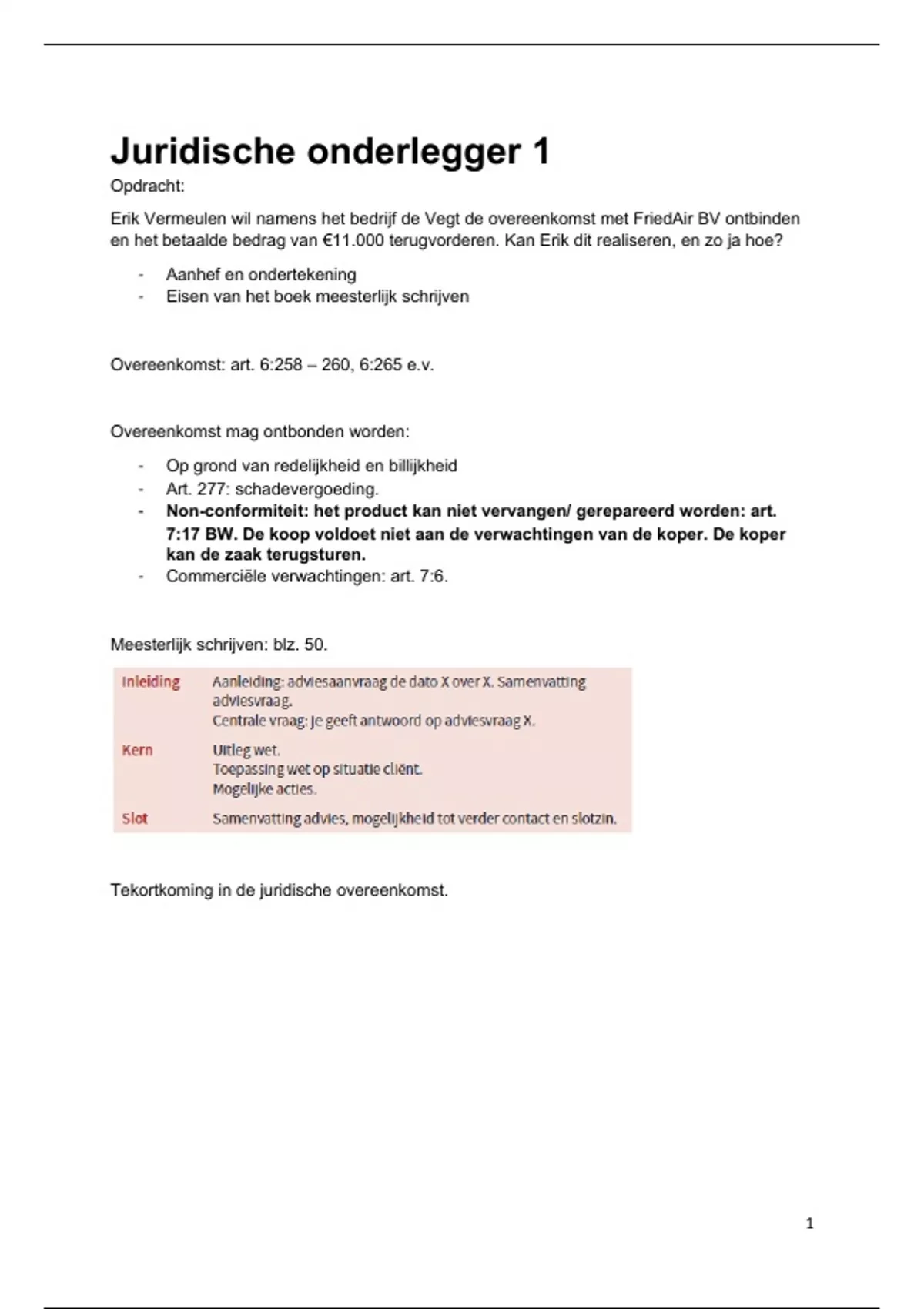 Juridische onderlegger 1
