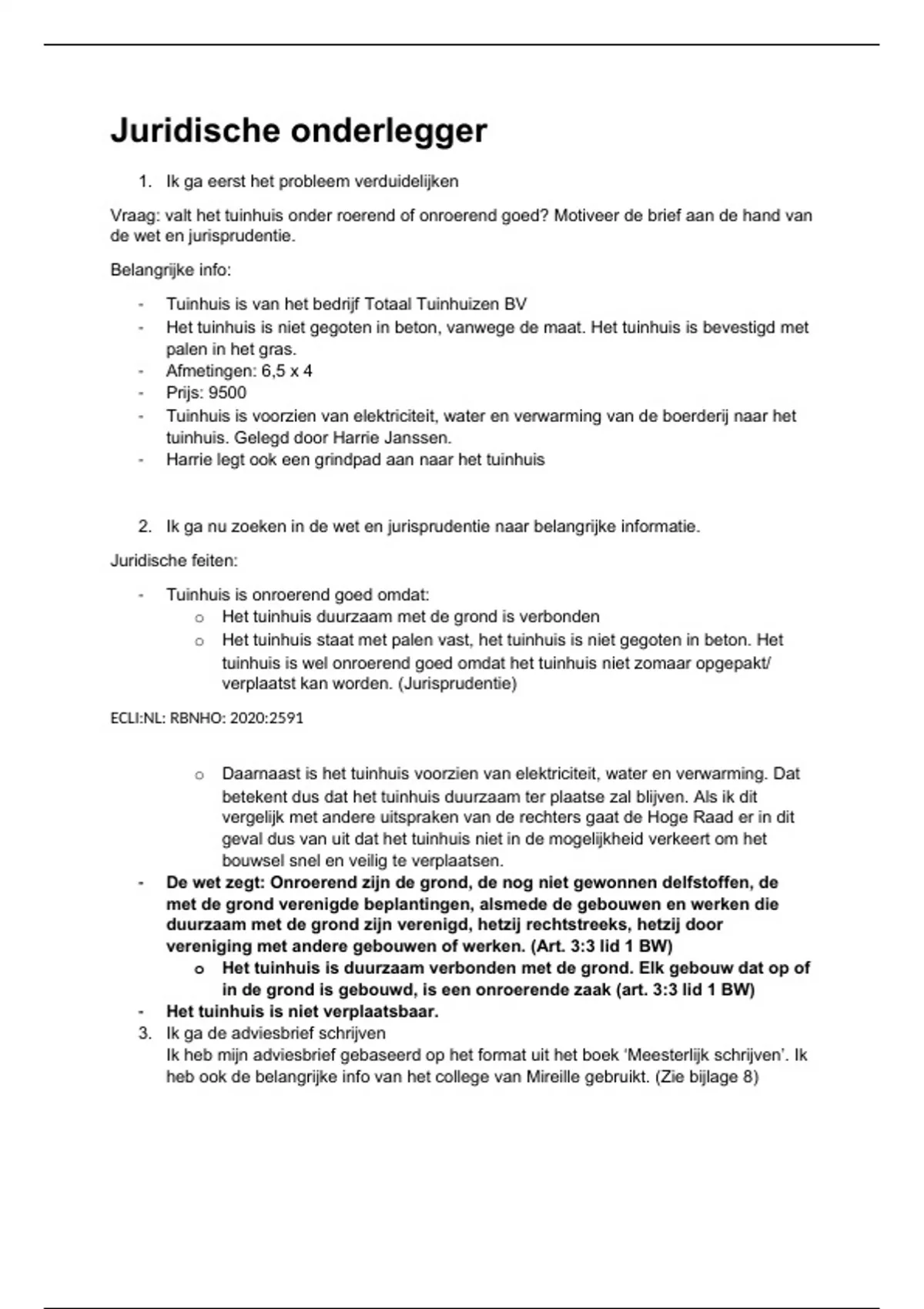 Vraag: valt het tuinhuis onder roerend of onroerend goed? Motiveer de brief aan de hand van
