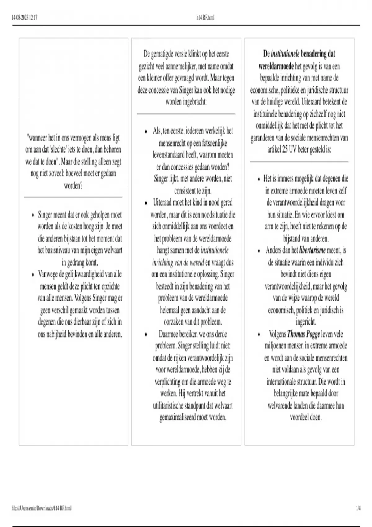 Rechtsfilosofie (boek: Mens & Mensenrechten), samenvatting hoofdstuk 14 in vorm van flashcards ALS DOCUMENT (cijfer: 8).