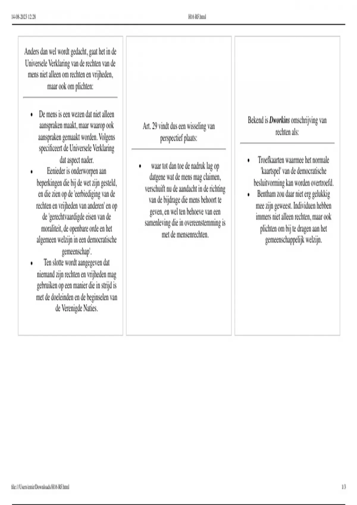 Rechtsfilosofie (boek: Mens & Mensenrechten), samenvatting hoofdstuk 16 in vorm van flashcards ALS DOCUMENT (cijfer: 8).