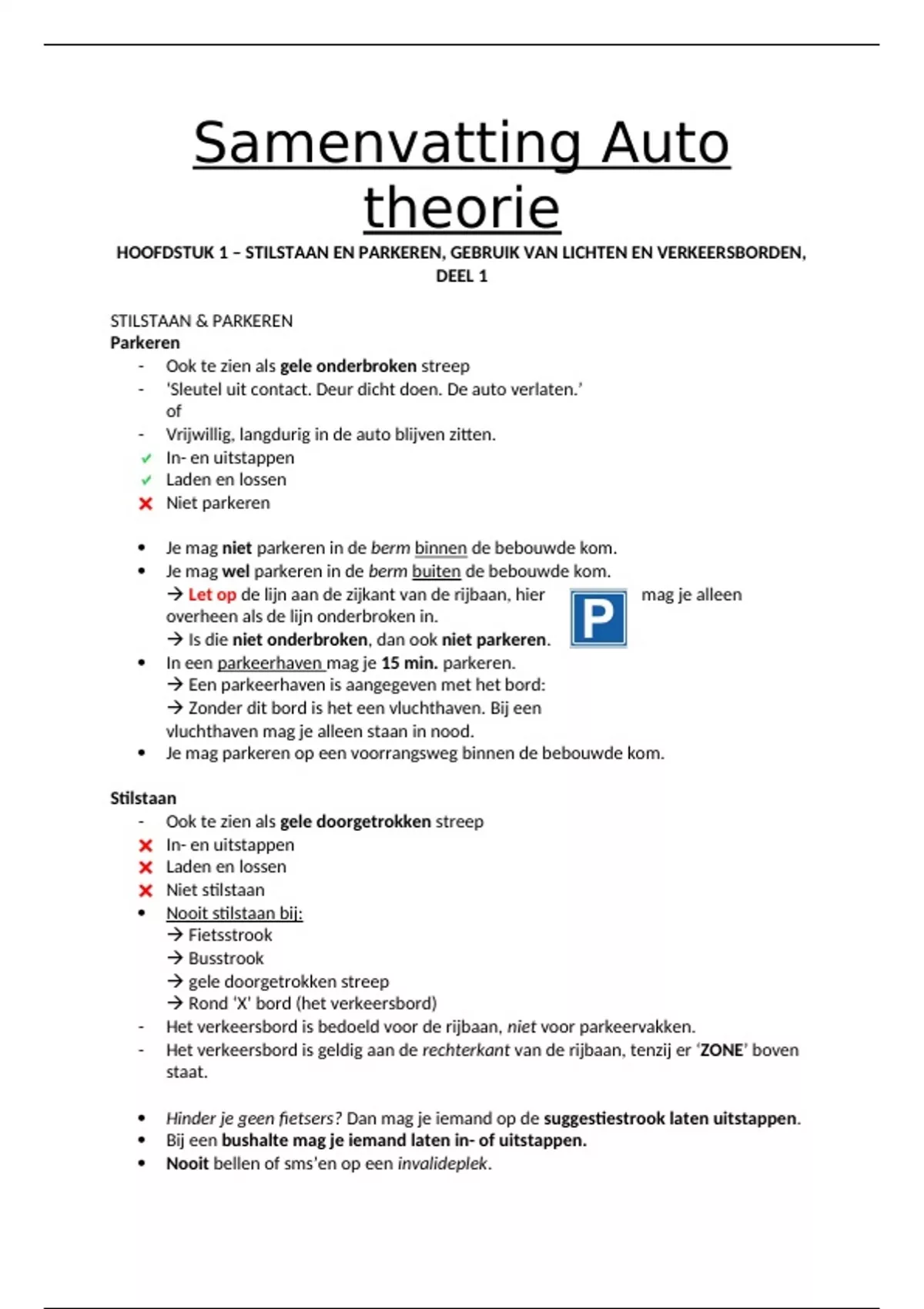 Met deze samenvatting ben ik in één keer geslaagd! Ik heb een samenvatting van 20 pagina's gemaakt met alle kennis die je moet weten wanneer je je theorie-examen voor rijbewijs B wil behalen.
