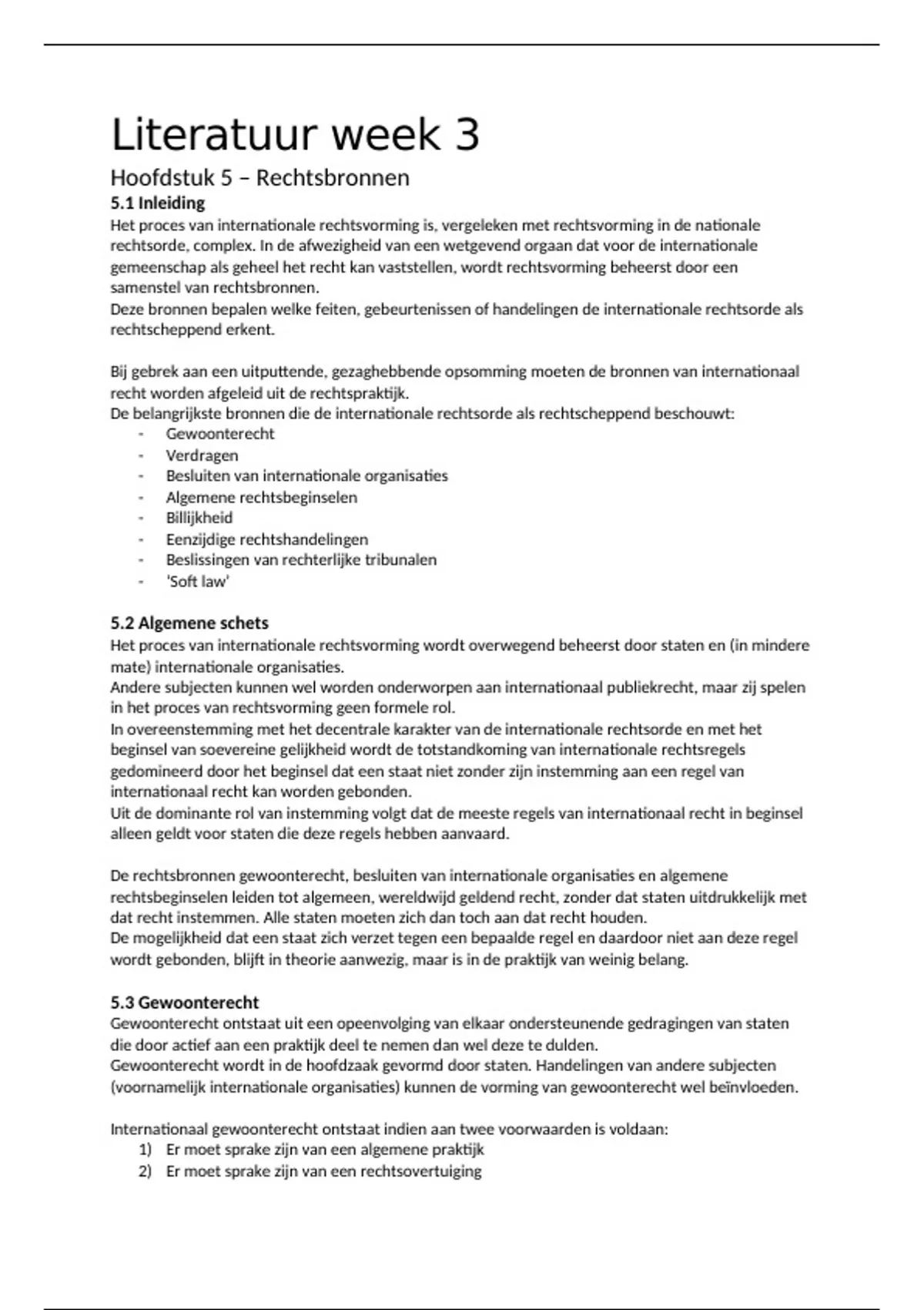 Samenvatting Literatuur week 3 - Inleiding internationaal publiekrecht (Universiteit Leiden)