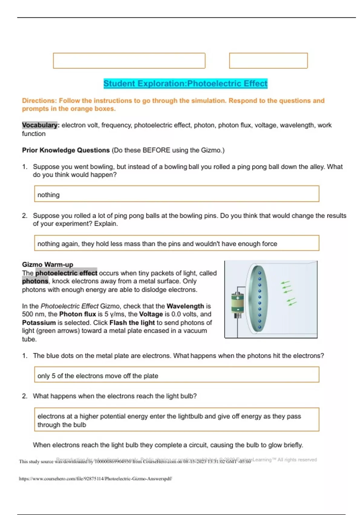 Gizmos Student Exploration Photoelectric Effect (ANSWER KEY)