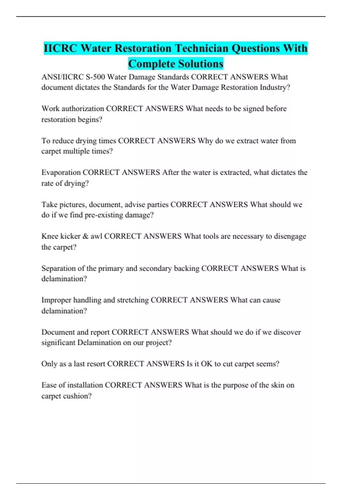 IICRC Water Restoration Technician Questions With Complete Solutions